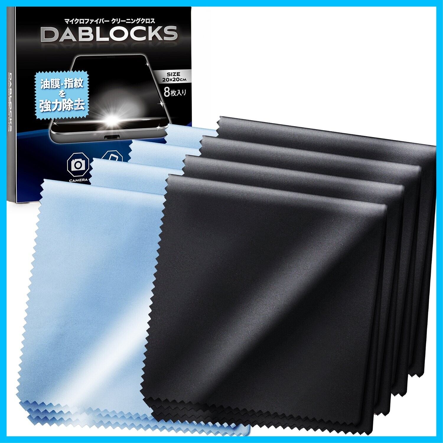 DABLOCKS クリーニングクロス マイクロファイバー メガネ拭き 液晶画面やカメラレンズにも 20×20cmの8枚セット(黒4枚、水色4枚)