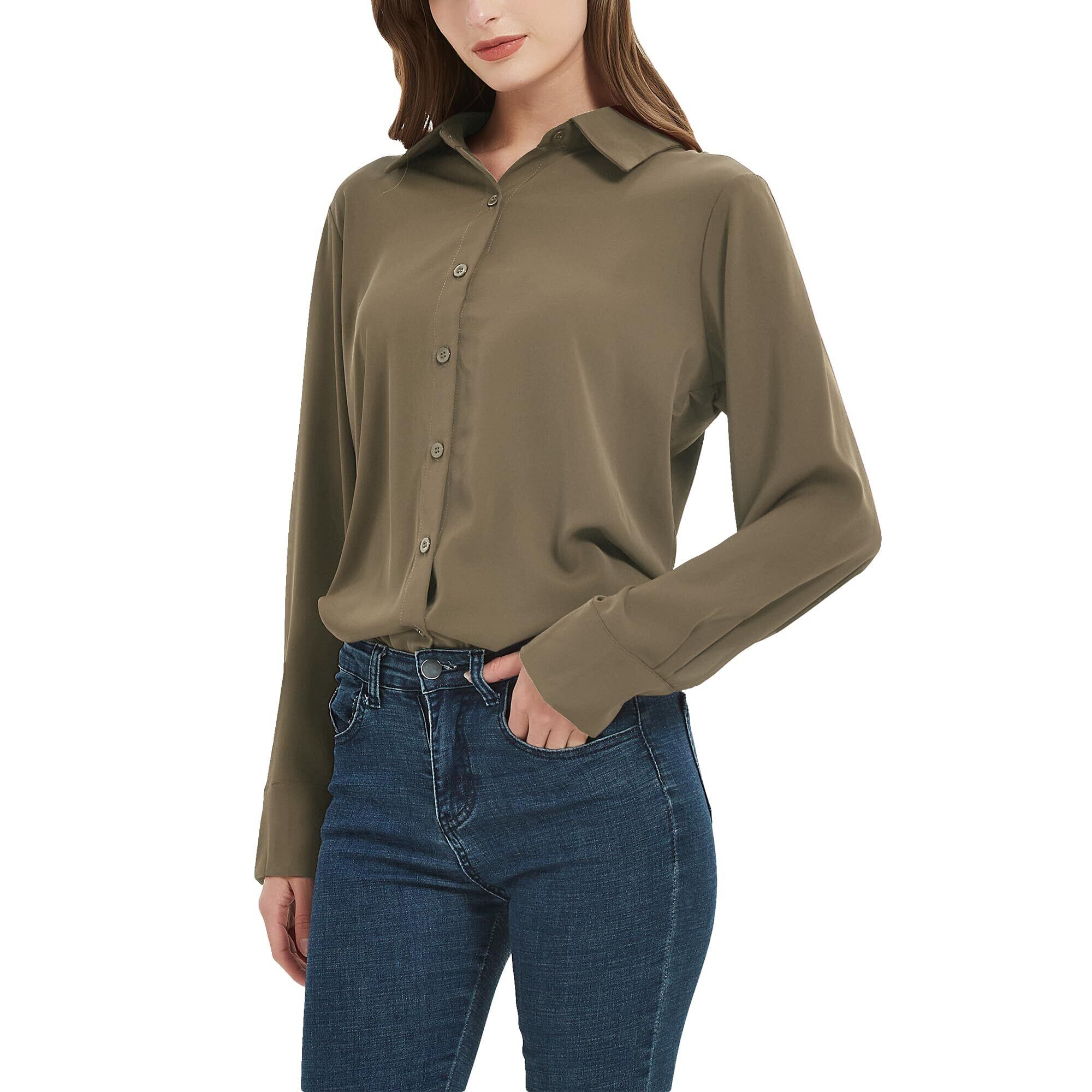 [SPRING SEAON] シャツ ブラウス レディース とろみワイシャツ ゆったり 大きいサイズ 長袖 ノーアイロン オフィス カジュアル ファッション 通勤 日常 高通気性 2S~4L