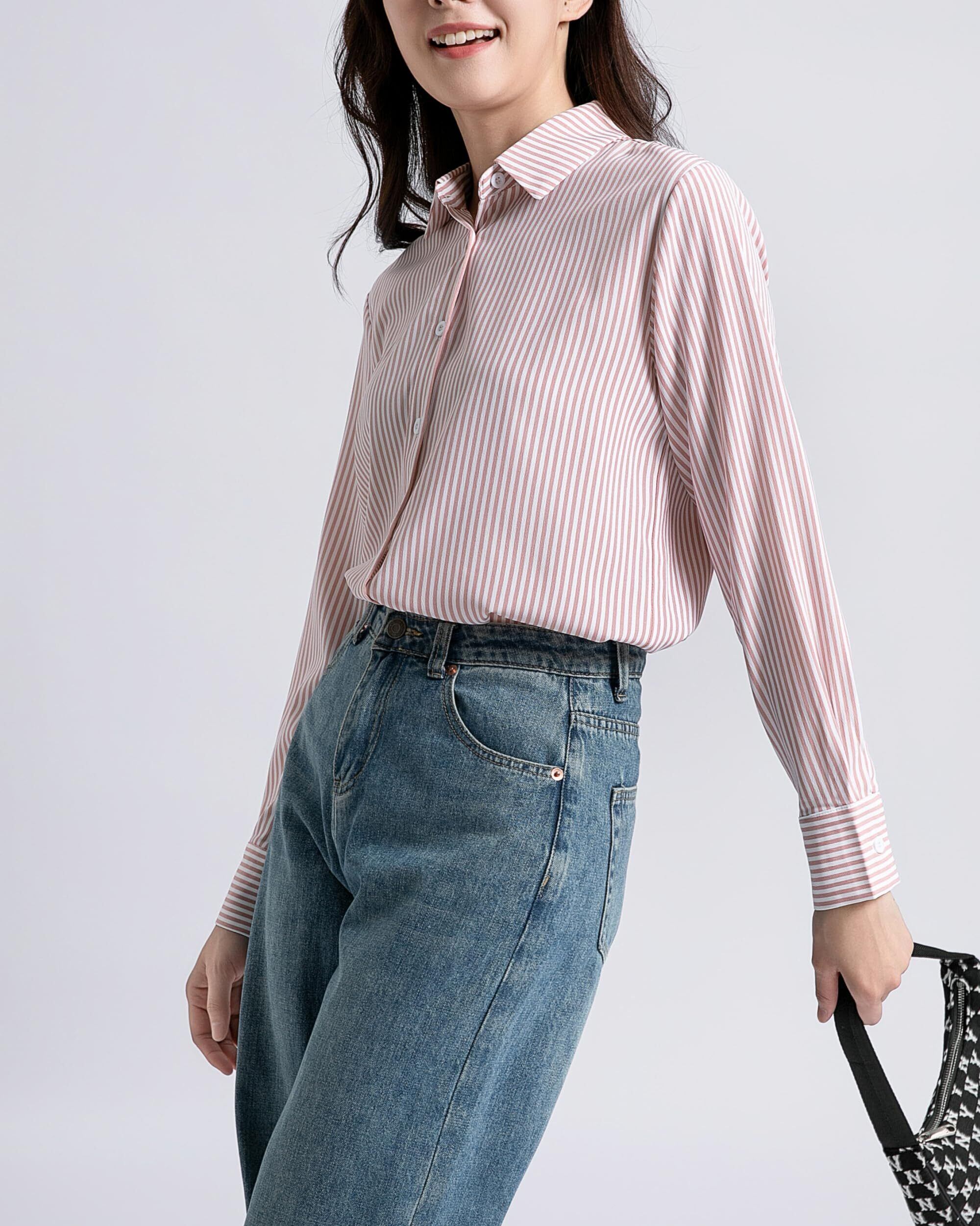 [SPRING SEAON] シャツ ブラウス レディース とろみワイシャツ ゆったり 大きいサイズ 長袖 ノーアイロン オフィス カジュアル ファッション 通勤 日常 高通気性 2S~4L