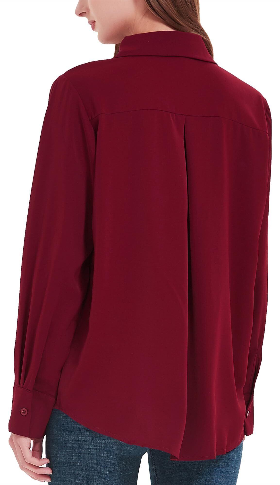 シフォンのしっとりと柔らかい肌ざわりと滑らかな光沢が魅力です。これ1枚で女らしさときちんと感を両立します。
