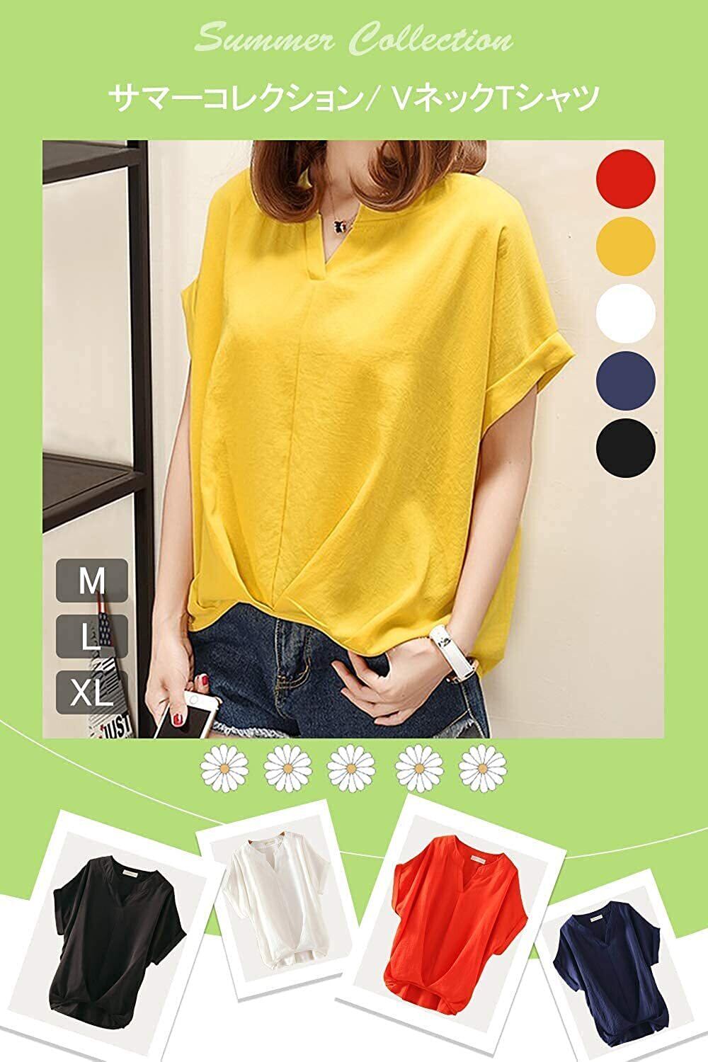 [INNIFER] 大人 シフォン ブラウス レディース 大きいサイズ 半袖 レディース トップス 秋 夏 おしゃれ シャツ Vネック きれいめ シンプル M~XL