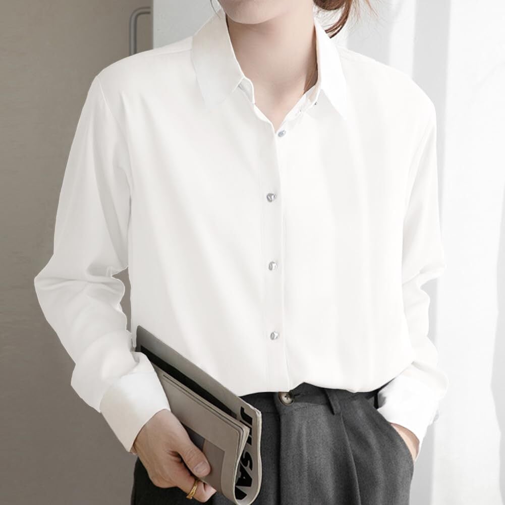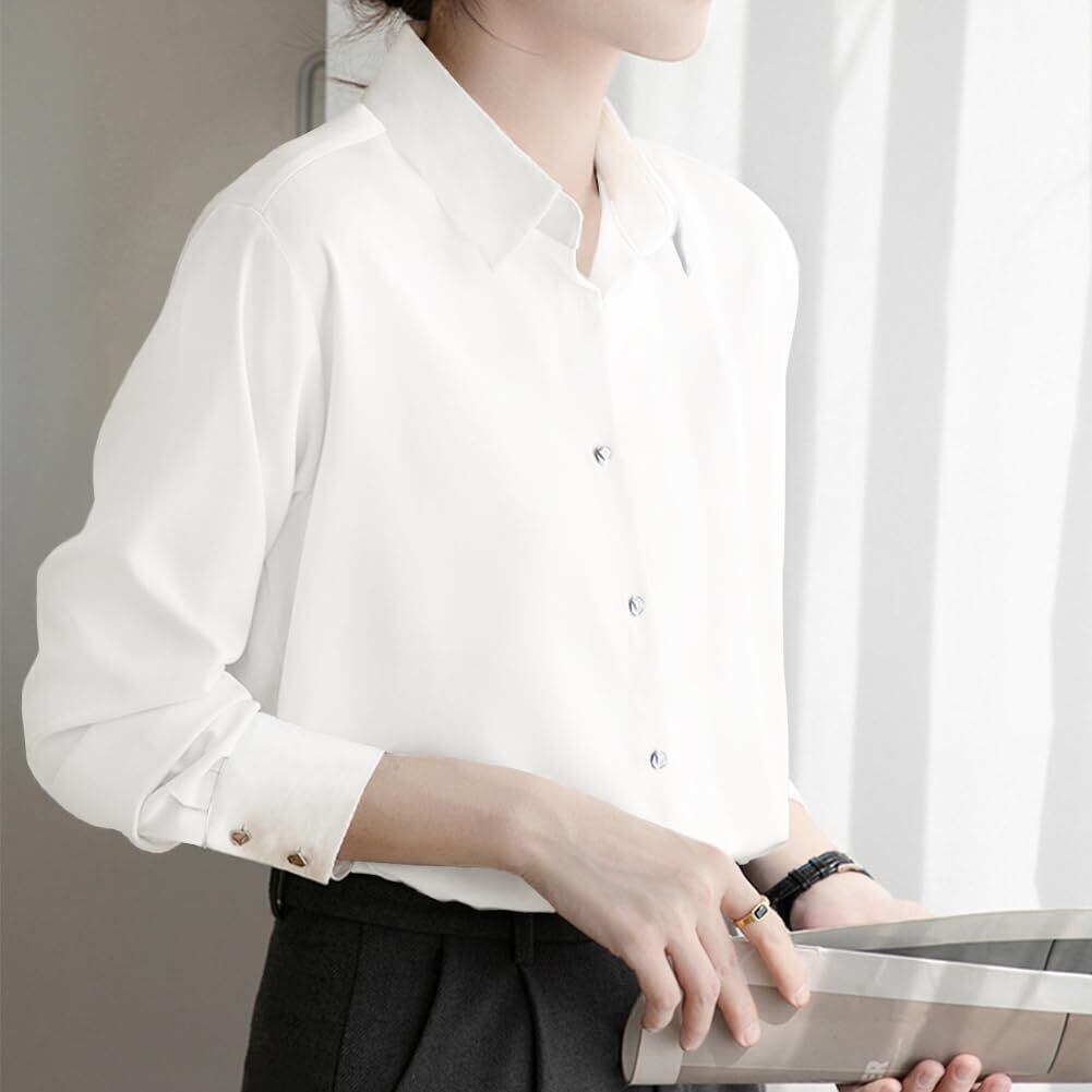 [Yino] (イノ) シャツ ブラウス レディース 長袖 バイカラー 襟付き トップス 体型カバー 着瘦せ シンプル きれいめ カジュアル 通勤 オフィス フォマール お出掛け ワイシャツ 秋 春