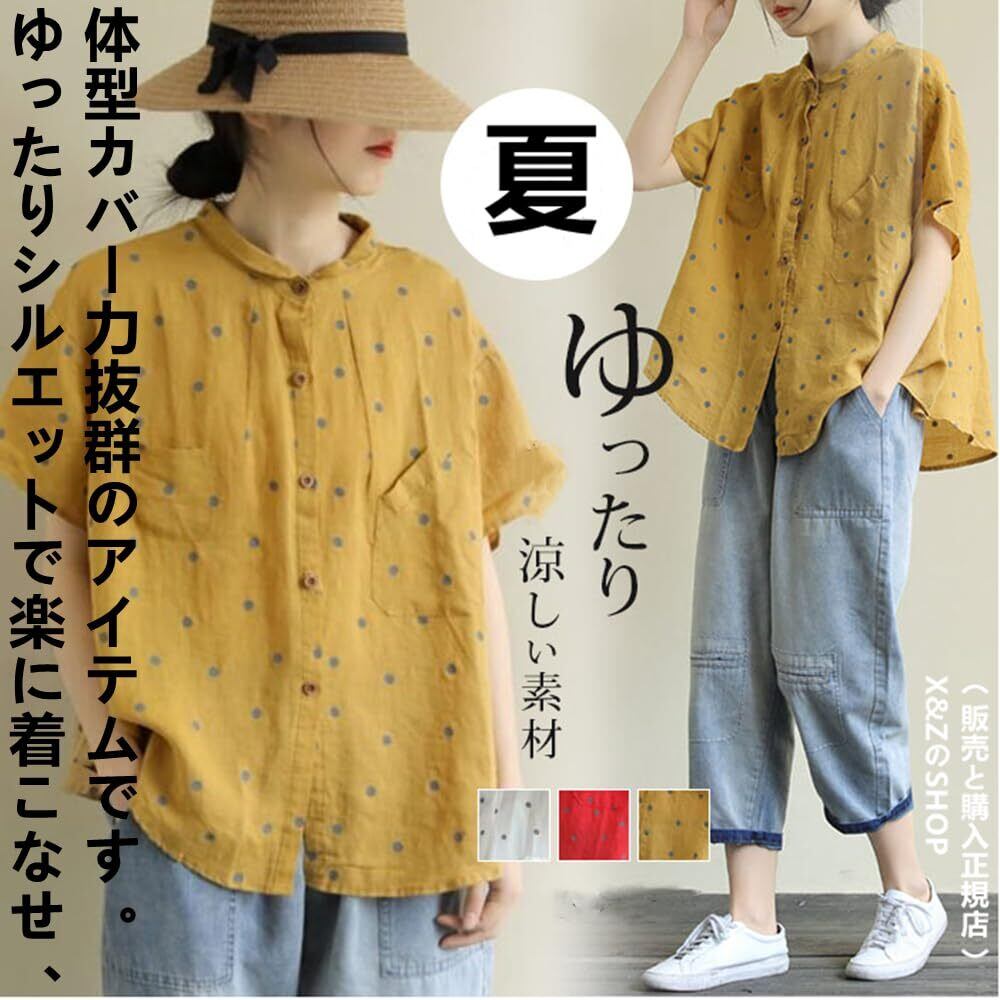 [Labstandard] X&ZのSHOP(販売正規店)リネン ブラウス 半袖 シャツ 綿麻 レディース 夏 涼しい 涼やか ドット柄 薄手 透け感 トップス Tシャツ カーディガン カジュアル 羽織り 着痩せ ゆったり 通勤 普段着 春夏秋