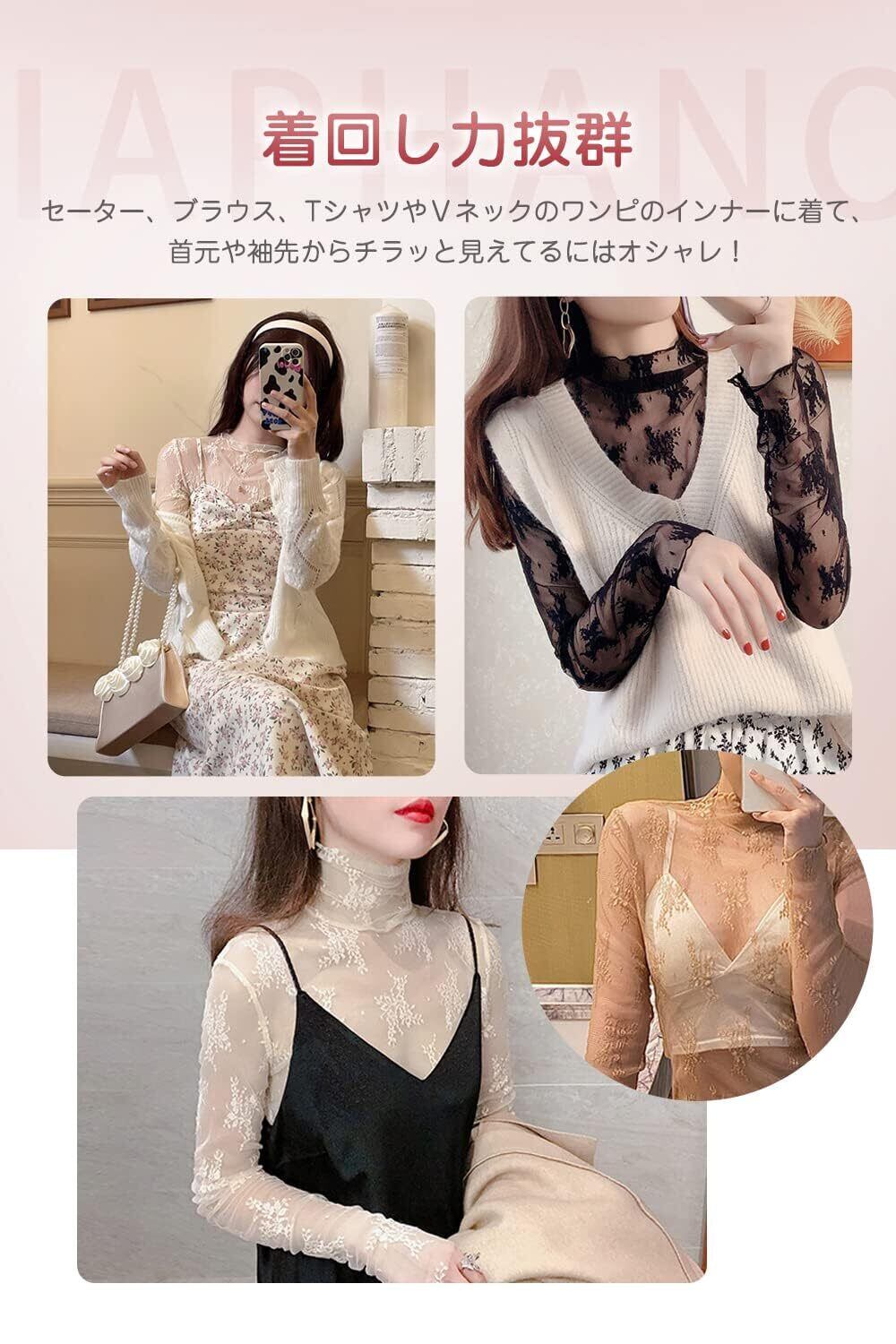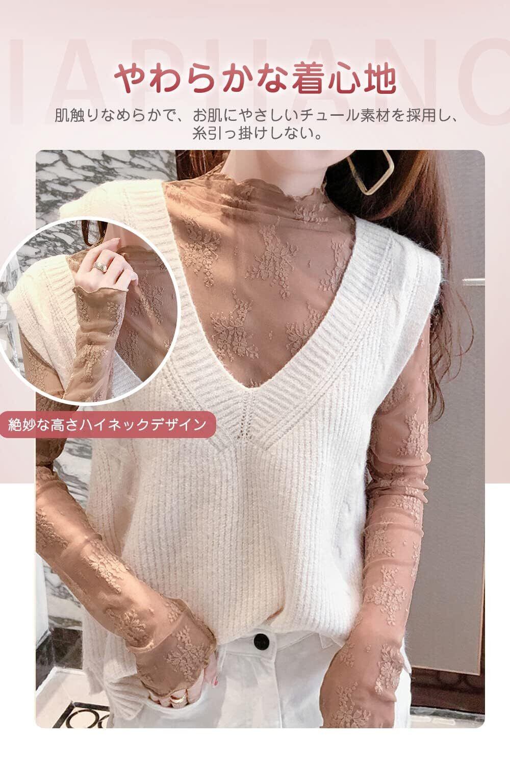 [Pneito] シアー トップス ハイネック レディース シースルー トップス レース 透け感 重ね着 伸縮性 シアーシャツ 長袖 柔らかい 薄手 花柄 可愛い 春夏秋冬