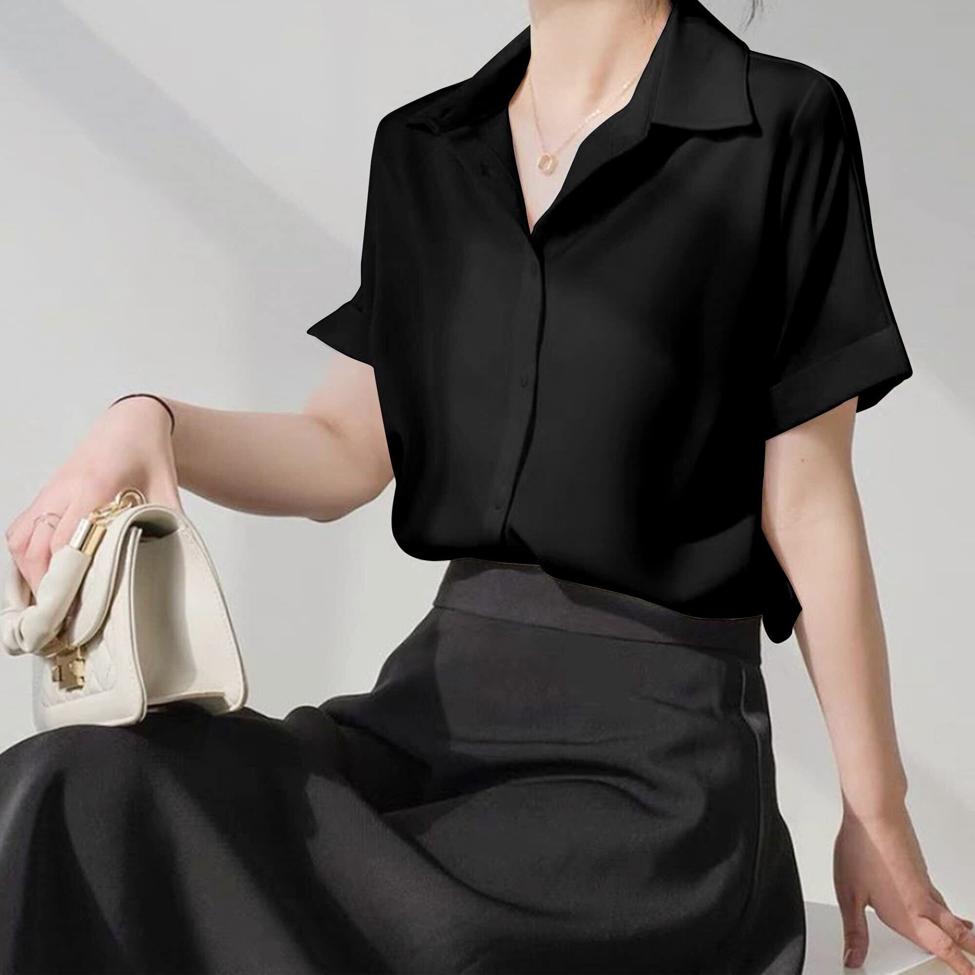 [SPRING SEAON] シャツブラウス レディース トップス 半袖 夏 カジュアル オフィス ノーアイロン 形態安定 とろみ ゆったり 大きいサイズ ビジネス ファッション 通勤 業務服 高通気性 2S~4L