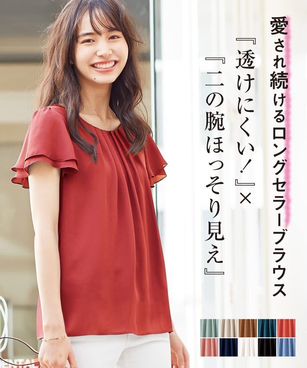 [ニッセン] ブラウス 半袖 フレア ジョーゼット 洗える レディース オフィス キレイめ カットソー裏地付