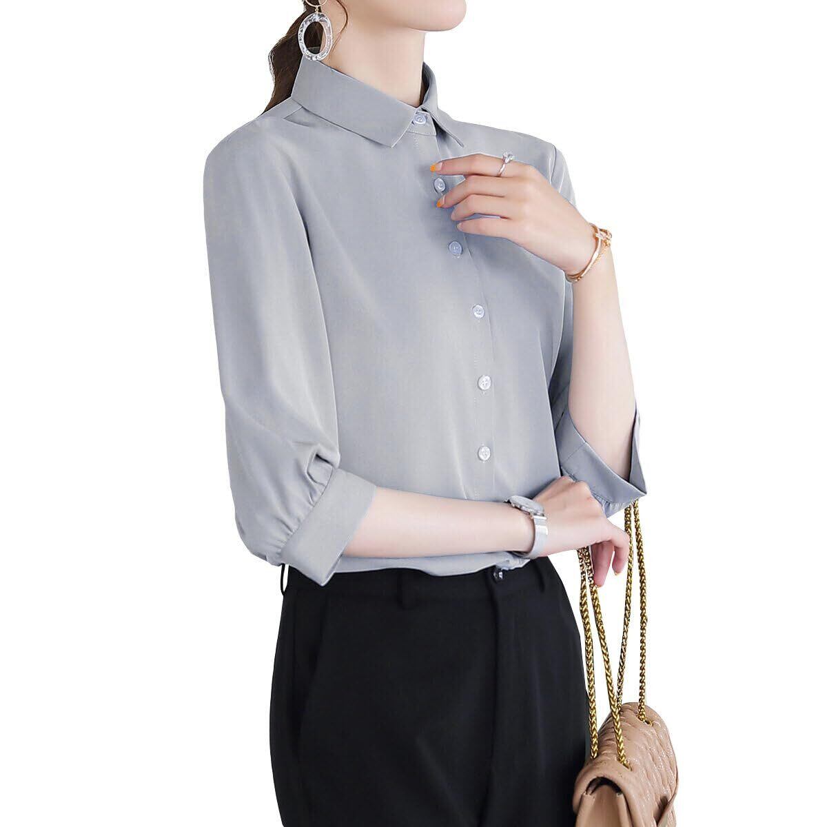 [ByFshow] レディース シャツ 七分袖 ブラウス カジュアル 折り襟 おしゃれ 着痩せ 春物 カットソー プルオーバー フォーマル レディース 事務服 ユニフォーム