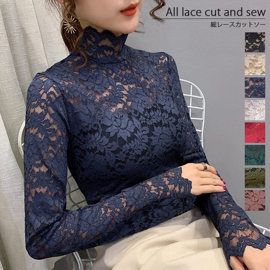 [ダイヤモンドハーツ] 長袖レースブラウス トップス シースルー レーストップス 重ね着 レディース 春 夏 韓国 韓国ファッション