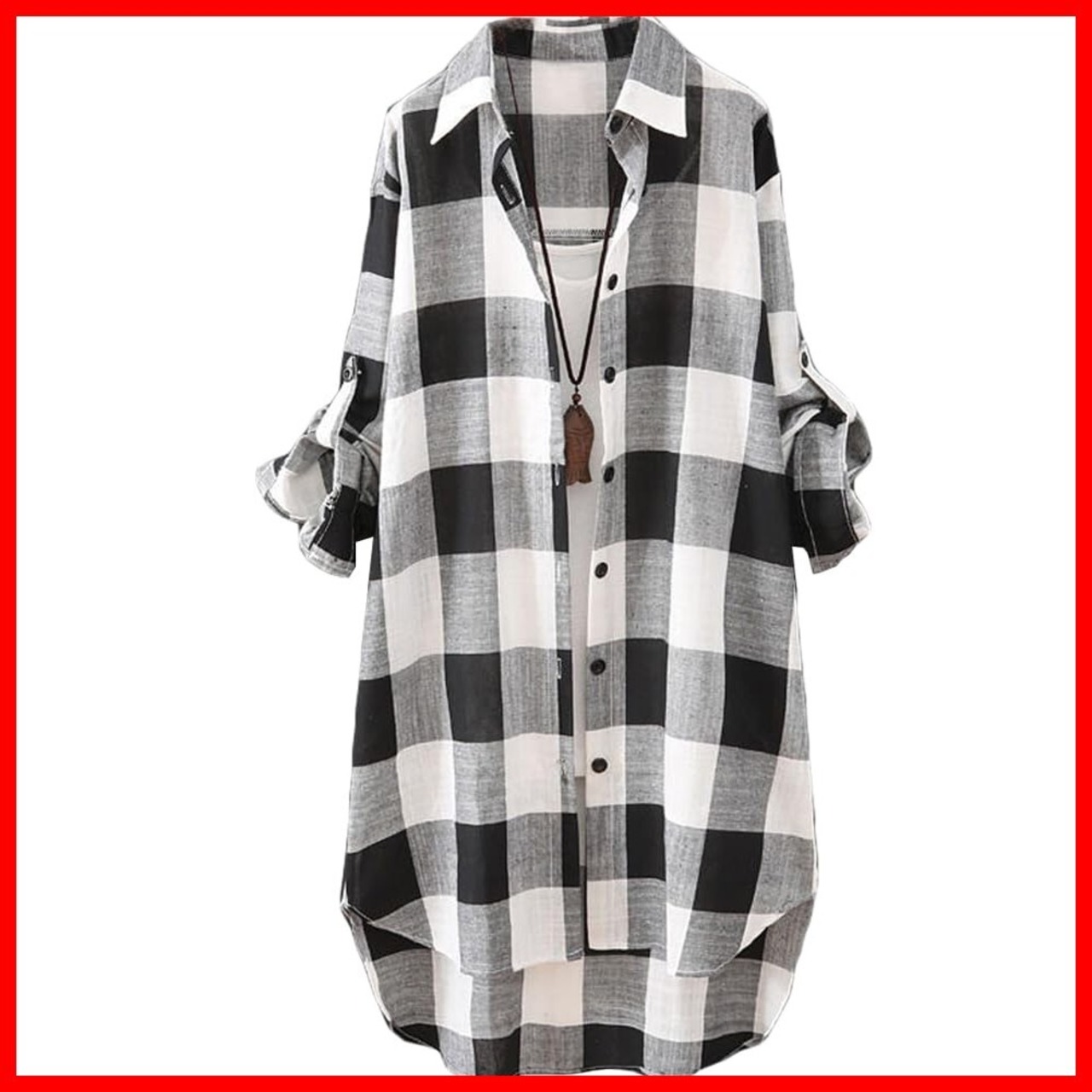 [Muzly] シャツ レディース トップス 大きめ ロング 薄手 春 夏 チェック柄 配色 おしゃれ カジュアル 体型カバー