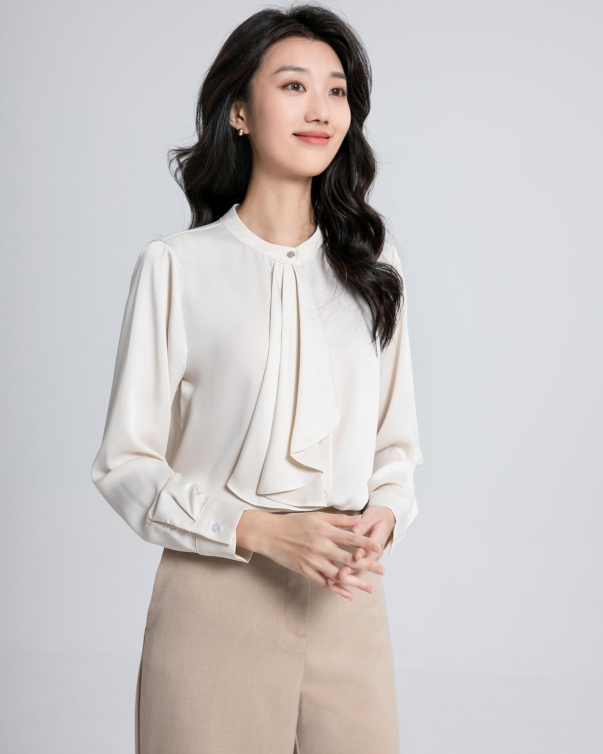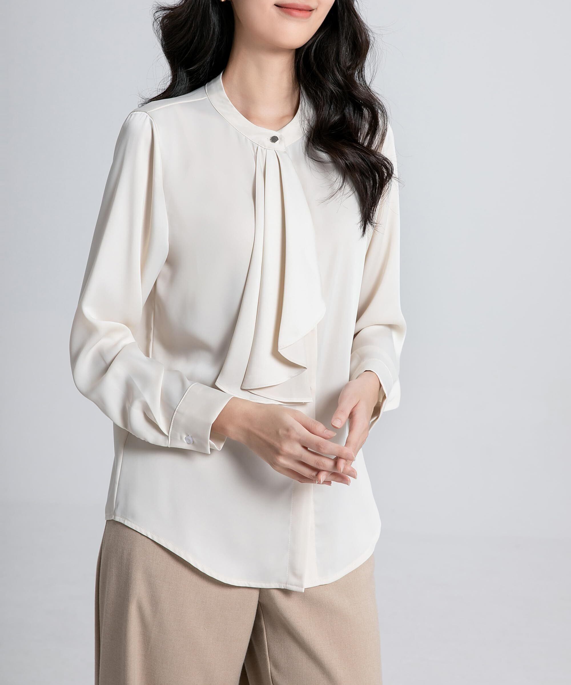 【ボウタイ】首元のボウタイデザインがきちんと感を醸し出してくれるブラウス。