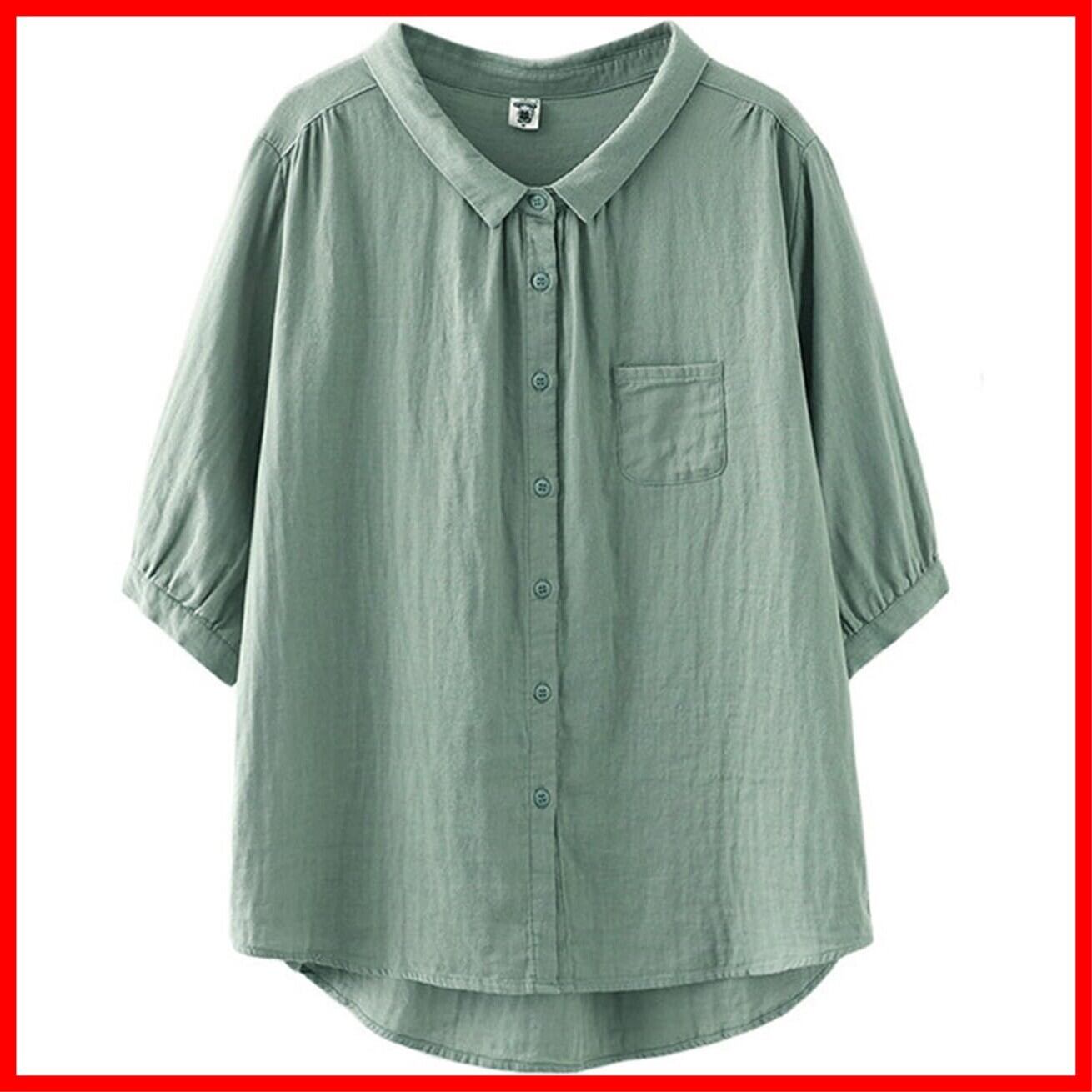 [JHIJSC] シャツ レディース 半袖 夏 綿 ゆったり 七分袖 着痩せ 無地 おしゃれ 大きいサイズ