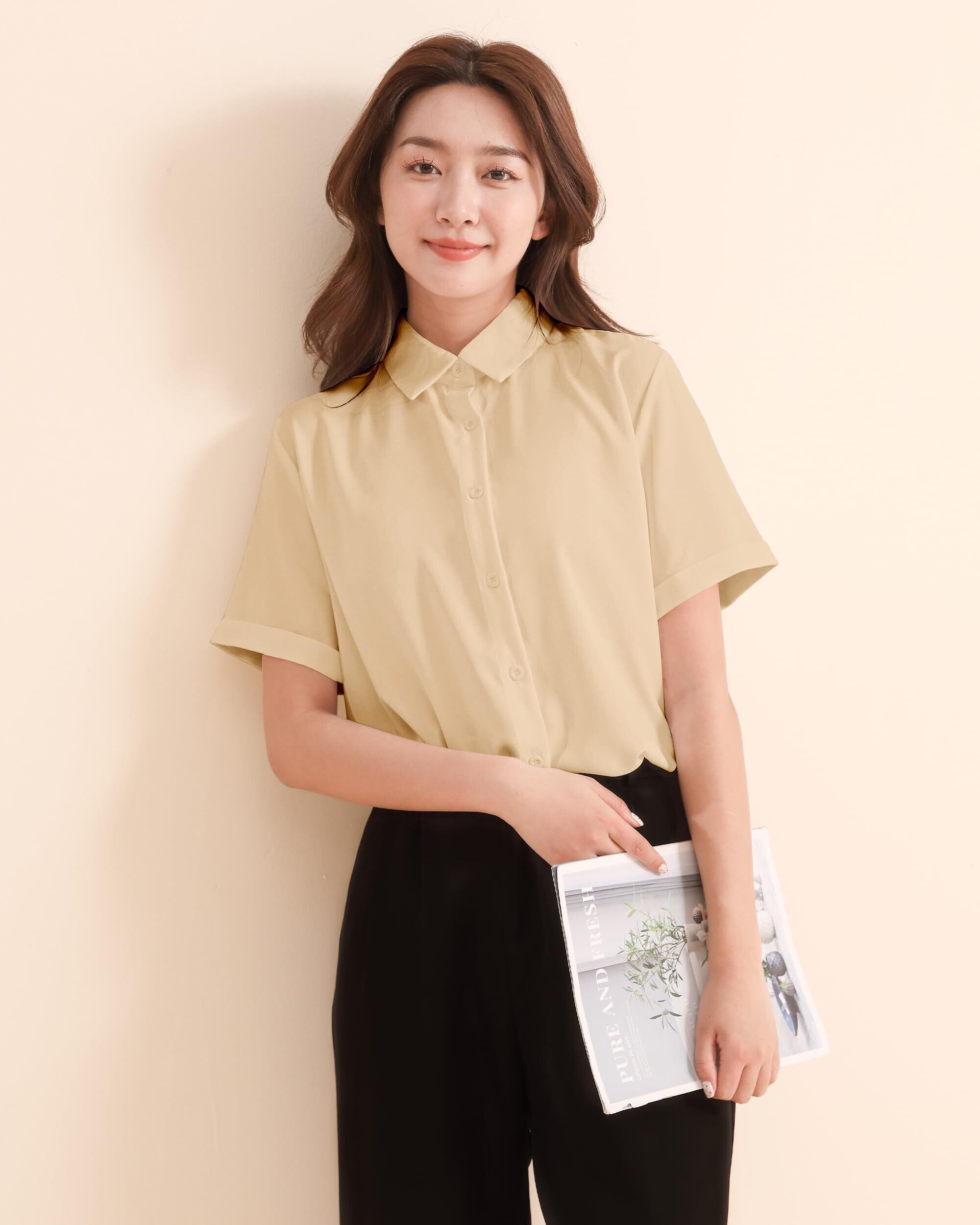 [YASHIGE] シャツ レディース 半袖 トップス 半袖シャツ 襟付き フレンチスリーブ 付き フォーマル シンプル 無地 薄手 透け感 オフィスブラウス オフィスカジュアル オフィス カジュアル 通勤 通学 春 夏 ファッション 業務服 高通気性