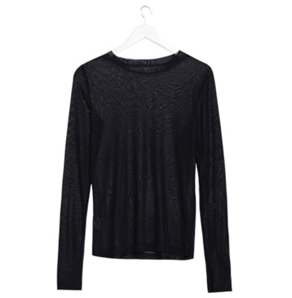 [UMIYI] シアートップス シースルー メッシュブラウス 透け感 Tシャツ 薄手カットソー 長袖 レディース クルーネック 日焼け防止 冷房対策 春トップス インナー シンプル おしゃれ レイヤード 重ね着 デイリー 大人可愛い リラックス お出かけ