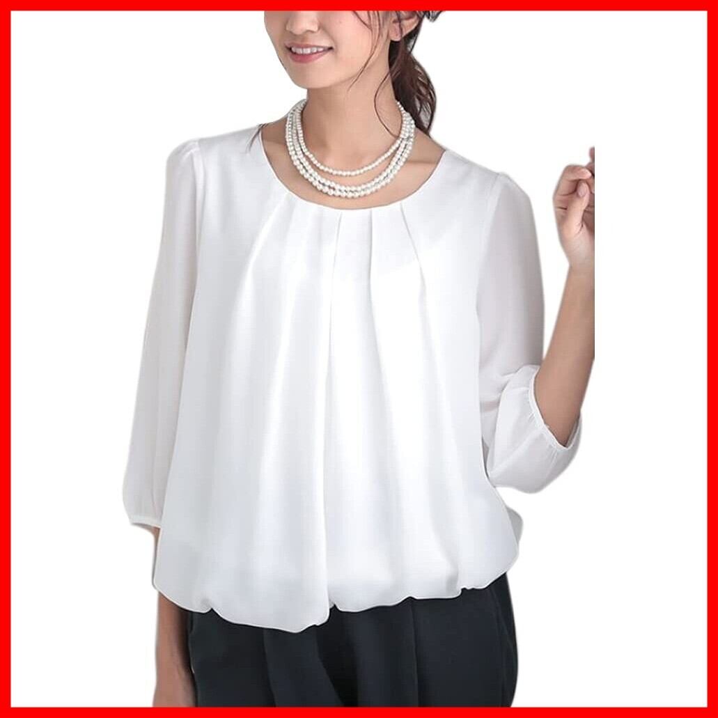 ブラウス レディース フォーマル バルーン オフィス カジュアル スーツ インナーブラウス シフォン 天竺 フロントタック 七分袖 無地 クルーネック ふんわり ビジネス 入学式 入園 卒業 卒園 七五三 白 母 ママ
