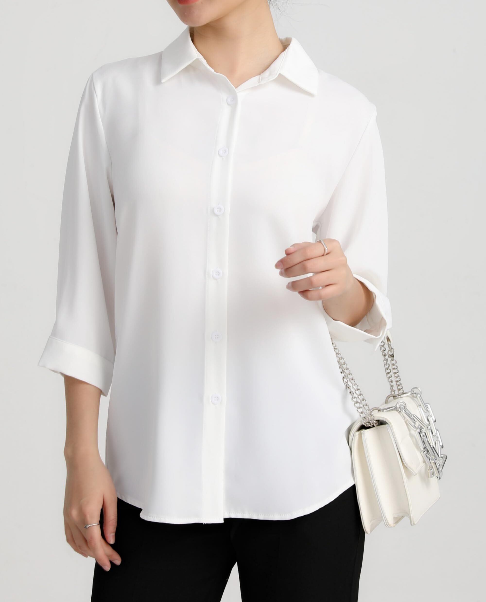 [YASHIGE] シャツ ブラウス レディース 七分袖 洗える キレイめ ビジネス 体型カバー 無地 ストレッチ ゆったり 大きいサイズ ノーアイロン オフィス カジュアル ファッション 通勤 日常 高通気性 XS~4L