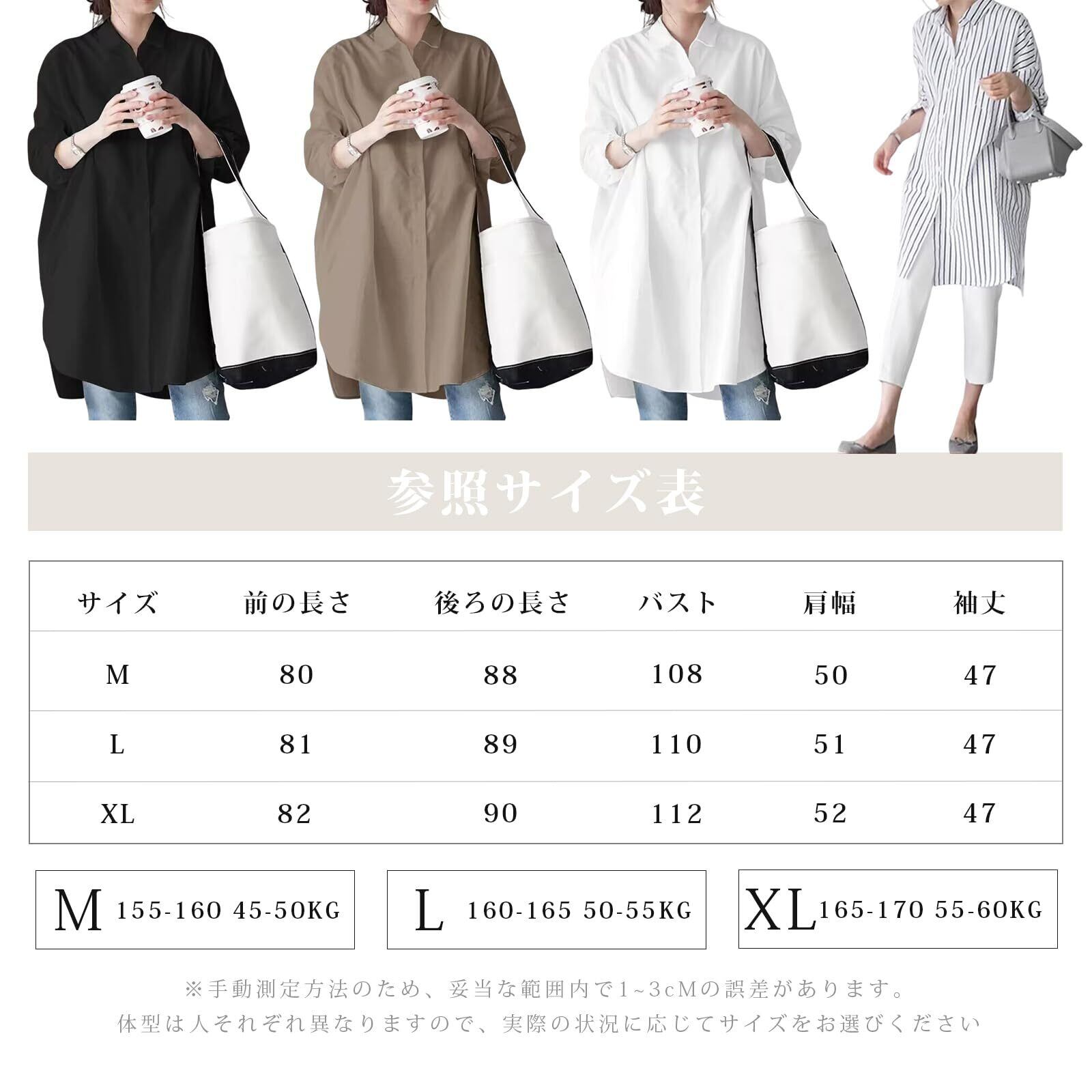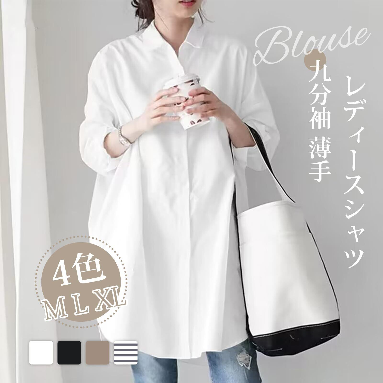 [R10righten] シャツ レディース ロングシャツ トップス ブラウス 九分袖 大きいサイズ 襟付き ロング ゆったり 薄手 ポリエステル混紡 体型カバー カジュアル シンプル 着痩せ 通勤 普段着 春 秋