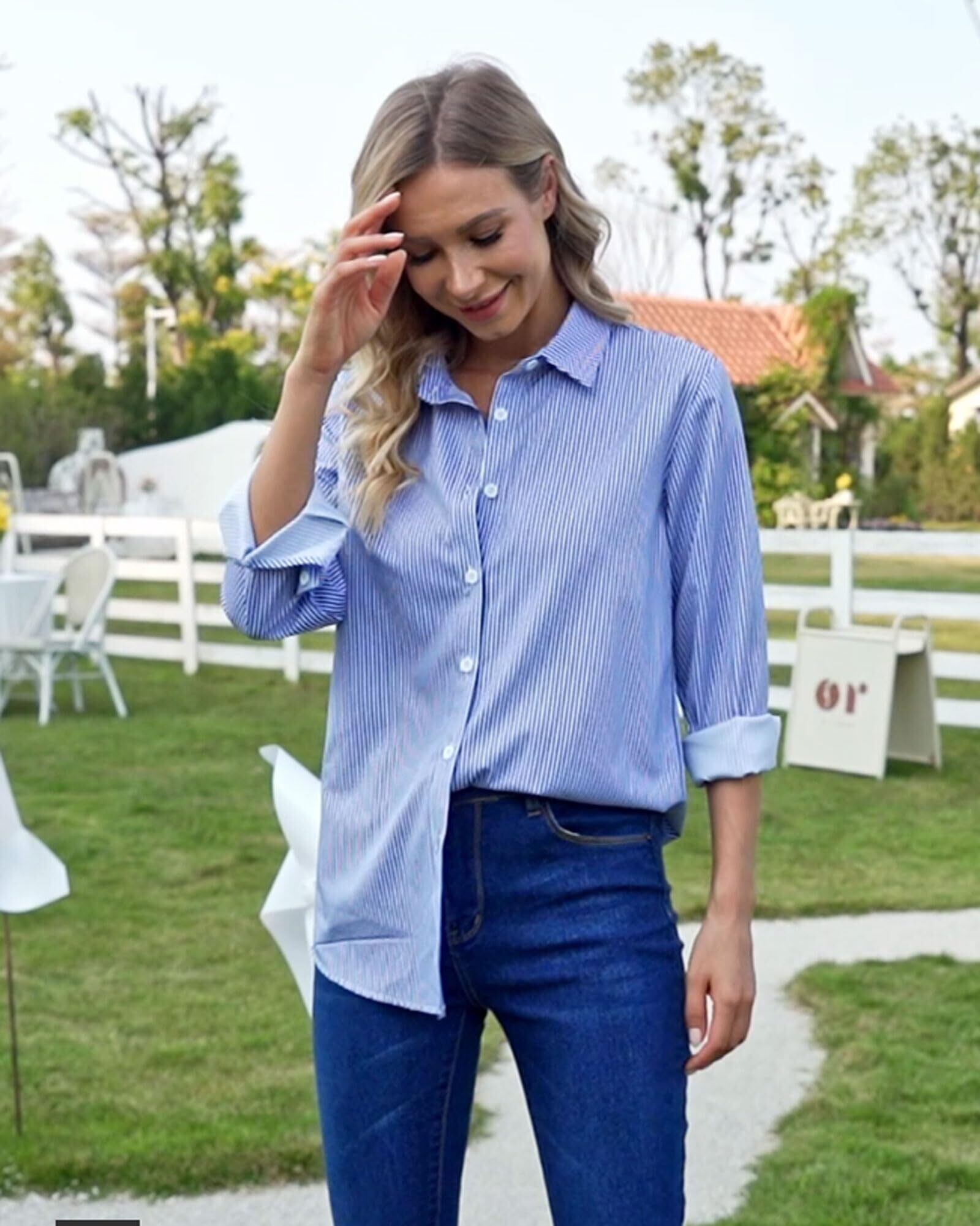【形態安定・簡単手入れ】形態安定加工が施されているため、アイロンがけが不要です。軽やかさがありシワになりにくく、日常のコーディネートに気軽に取り入れられます。肩周りに余裕があるため、上半身を捻ったときにも動きやすく感じます。