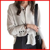 【定番なシャツ】水色、白、ベージュの3色をご用意しており、合わせるボトムやベストを選ばない絶妙な丈感で使い勝手抜群、デイリーにもオフィスにも一枚でコーデが広がります。春先に欠かせない長袖シャツで洗練された大人しい印象を作り出し、オフィスに最適!ジレ やニットベストなどにレイヤードしてもどこかこなれ感の出るアイテム。 一枚持っておけば様々な着こなしの叶うアイテムです!
