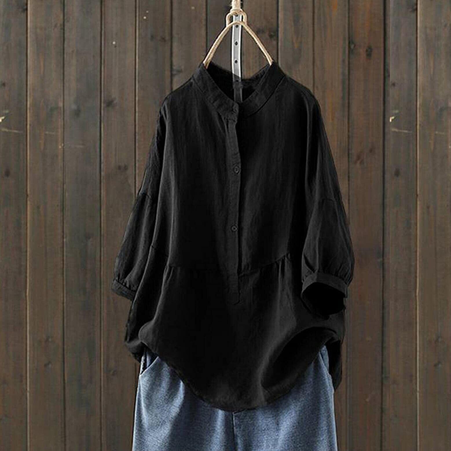 [uellak] レディースファッション トップス 春 コットン リネン シャツ ゆったり ワイシャツ 無地 綿麻 開襟シャツ おしゃれ シンプル カジュアル 長袖シャツ 柔らかい 快適 春服 20代 30代 40代 50代