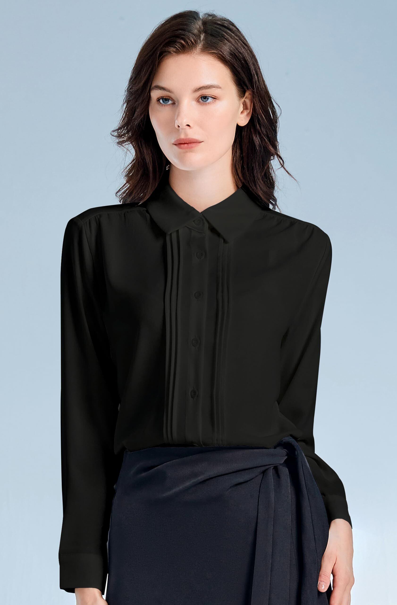 [SPRING SEAON] シャツ レディース ピンタック ブラウス 長袖 とろみワイシャツ ゆったり 大きいサイズ ノーアイロン オフィス カジュアル ファッション 通勤 日常 高通気性 S~4L