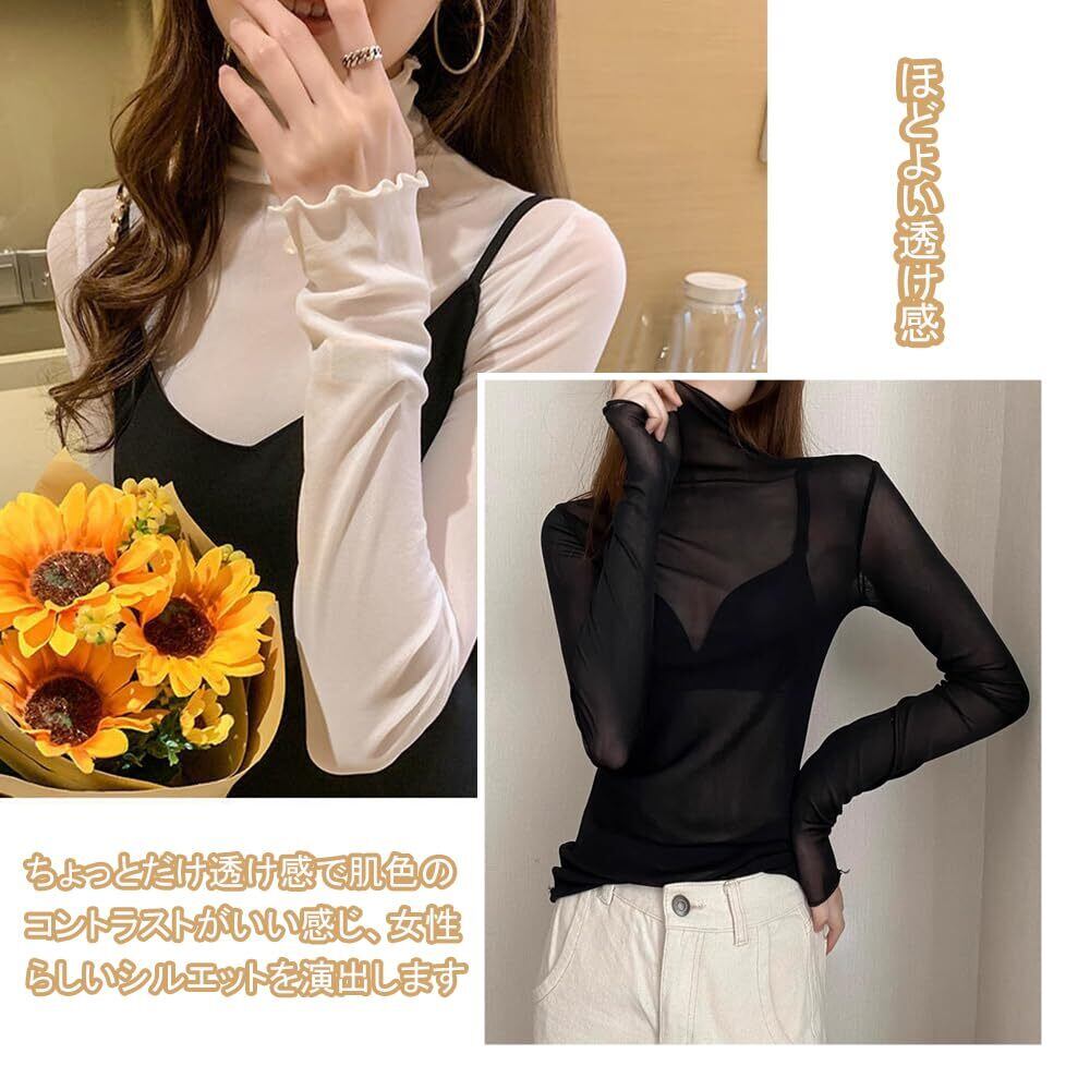 [サムコス] シアー トップス ハイネック シースルー レディース トップス レース 春夏 絶妙な透け感 肌見せ 重ね着 高伸縮 シアーシャツ 長袖 軽量 薄手
