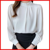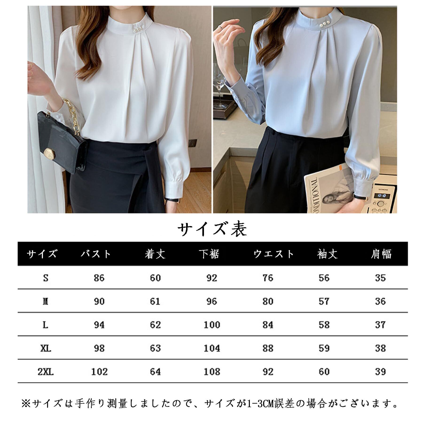 [Lalapala] シャツ ブラウス レディース 長袖 パール 立ち襟 ギャリー トップス 大人 可愛い 上品 エレガント ゆったり 体型カバー おしゃれ 着回し ファション オフィス カジュアル フォマール デート 通勤 秋冬
