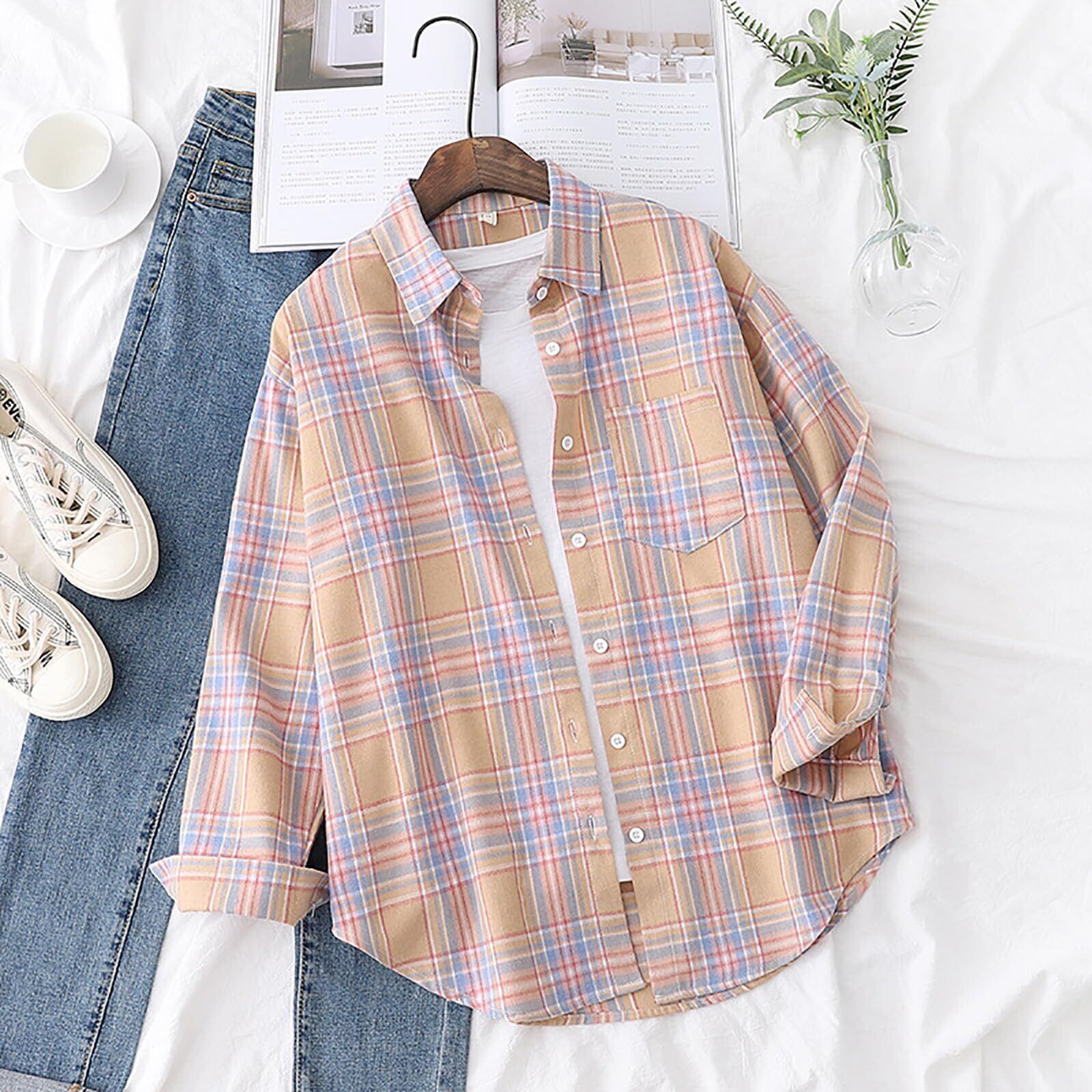 [Ailiyumo] レディース チェックシャツ 長袖 ネルシャツ ゆったり 大きいサイズ トップス ジャケット ブラウス 通勤 通学 春 秋 冬