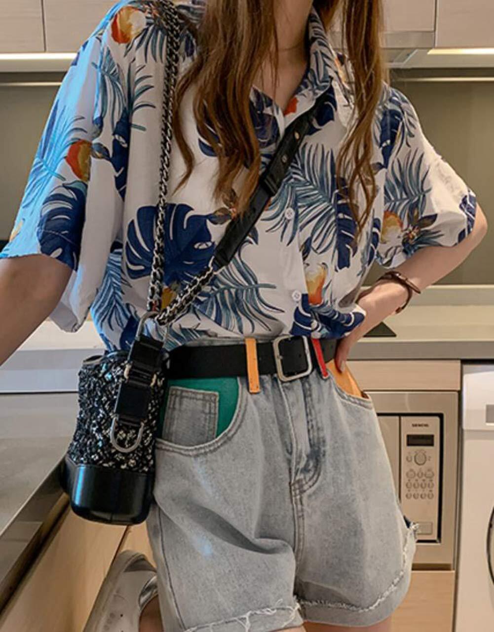 [ShuMing]レディース 半袖 アロハシャツ 花柄 ブラウス ゆったり プリント ファッション ハワイシャツ ビーチウェア レトロ トップス リゾート 旅行 夏