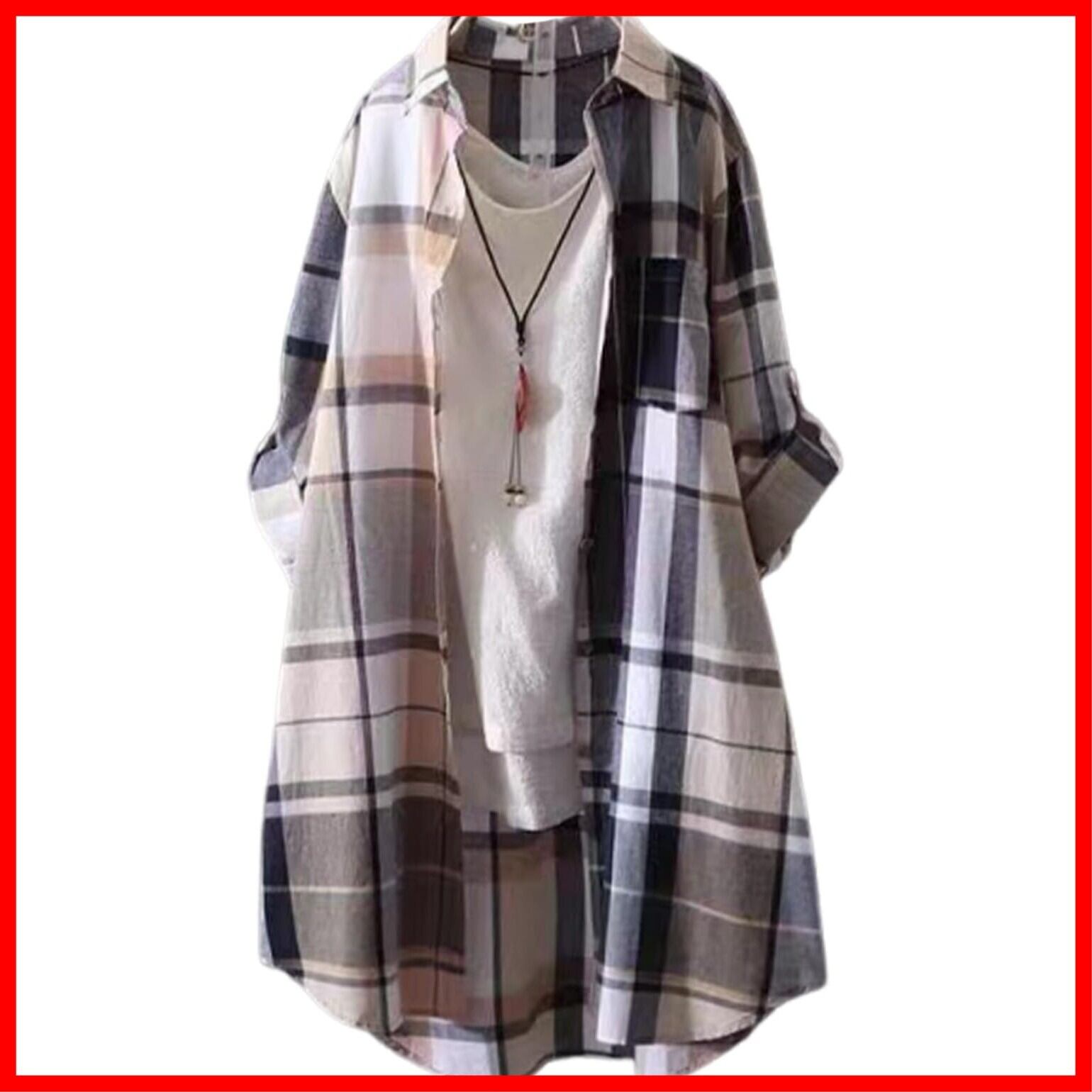 [J.STORE] チェック シャツ ロング 丈 カジュアル 春 夏 ゆったり 大きいサイズ 薄手 長袖 レディース