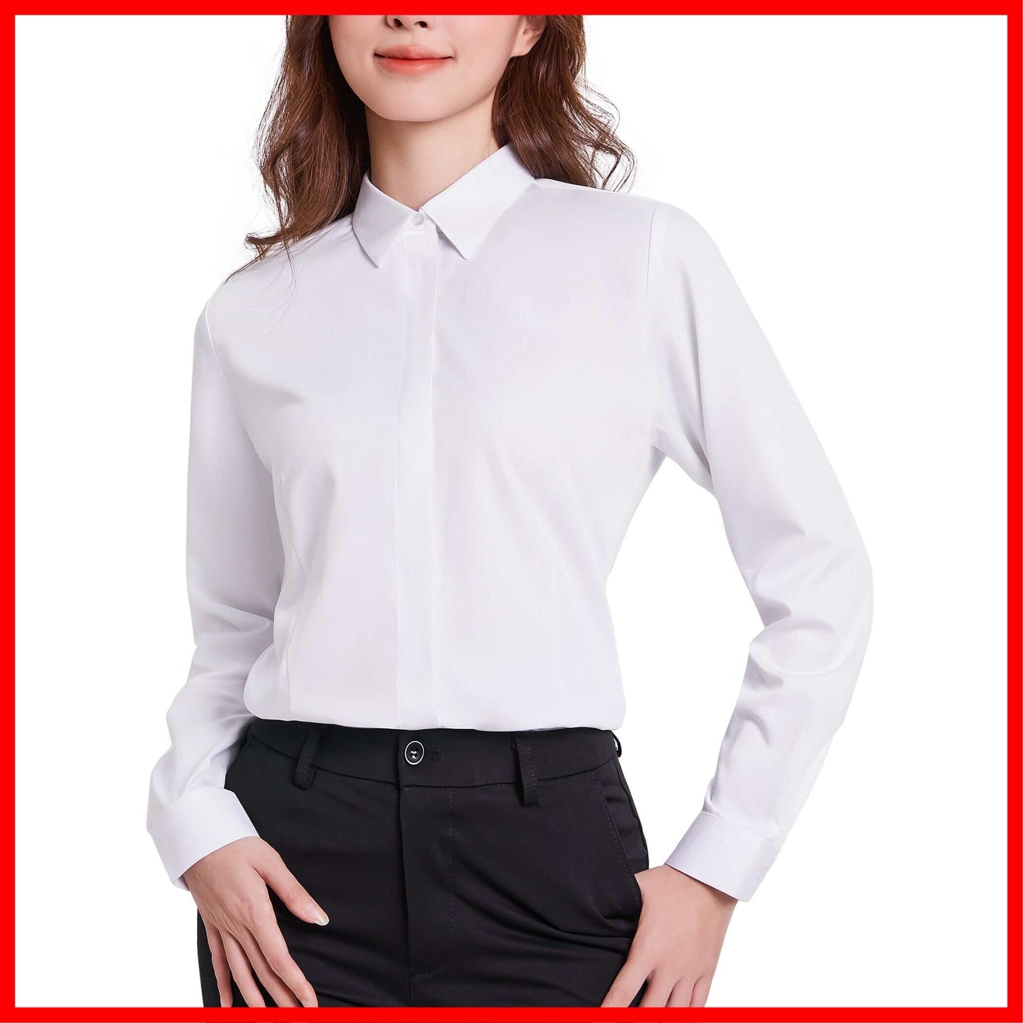 [Stamain] 新登場!ZL1537「柔らかい」通勤 オフィス ブラウス ノーアイロン UV防止 UPF50+ 高通気 事務服 就活 きれいめ 着痩せ 高级 レディース ビジネス ワイシャツ 長袖 スリム/80番手/201g
