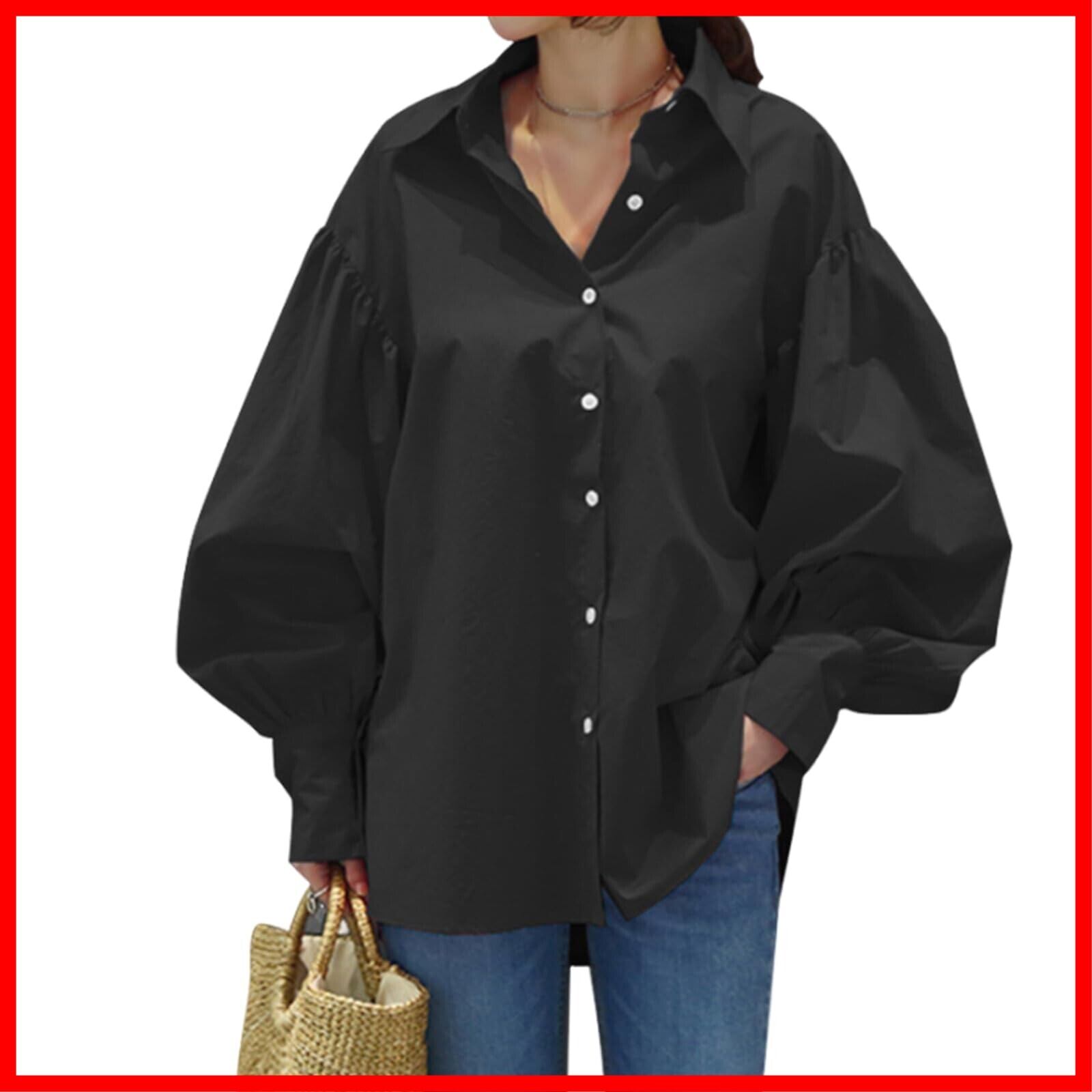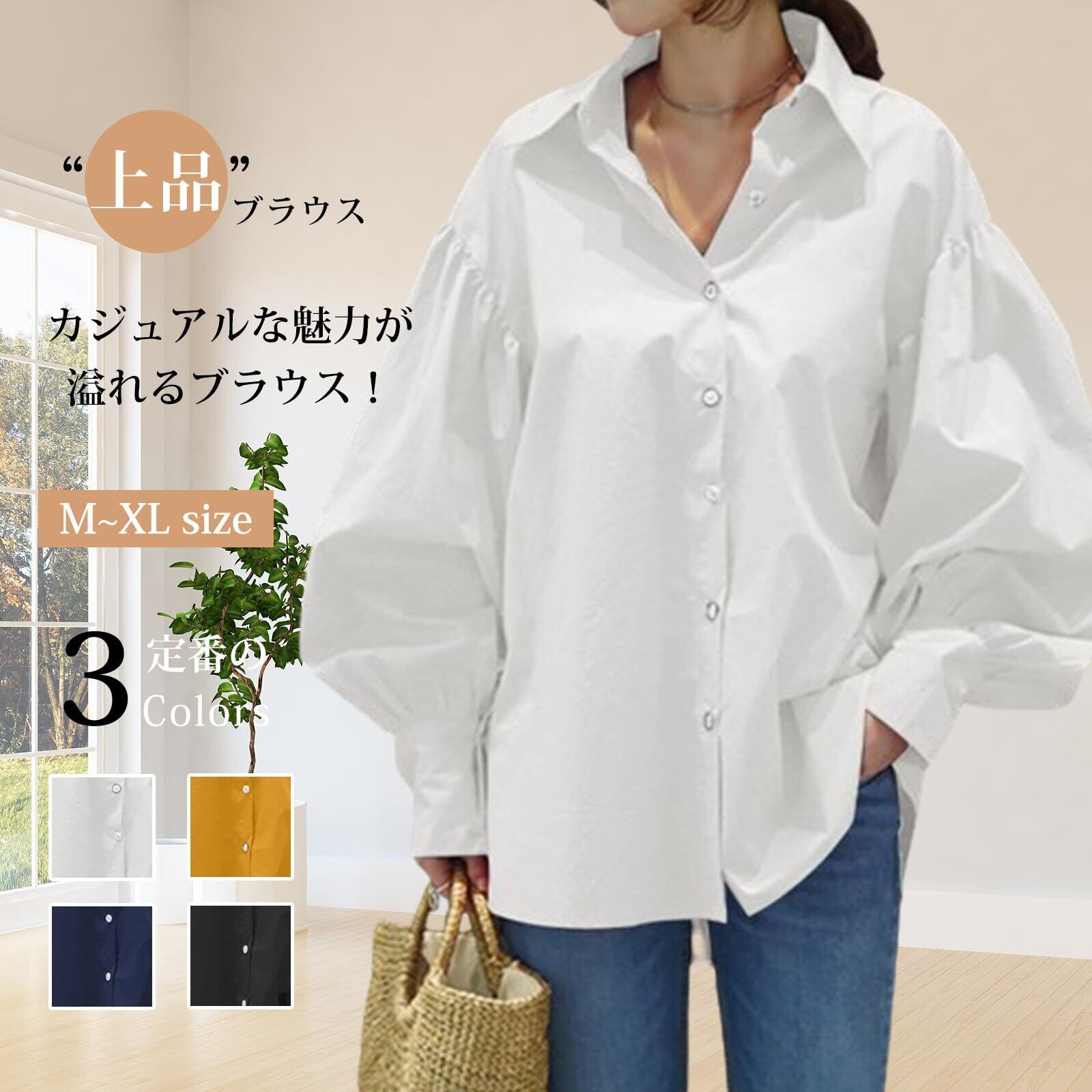 [HuuMeNEIDOO] ブラウス レディース 長袖 シャツ パフスリーブ ワイシャツ トップス 無地 薄手 ゆったり 体型カバー 大きいサイズ シンプル おしゃれ 着痩せ カジュアル 通勤 オフィス 春 夏 秋