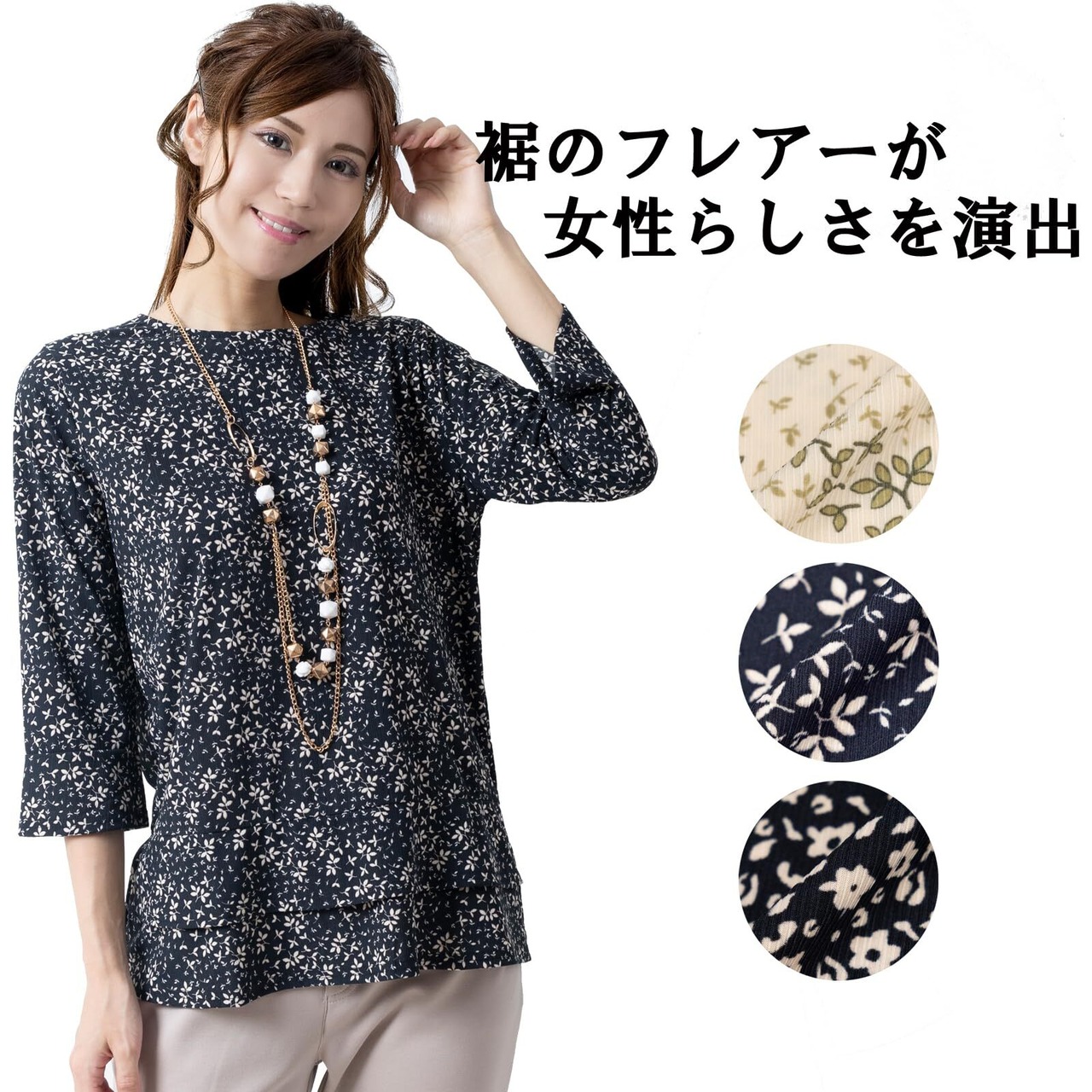 [FLUTE.MF] レディース ブラウス フレアー 7分袖 カットソー トップス カジュアル 大きいサイズ 体型カバー おしゃれ 上品 トレンド 春 夏 秋