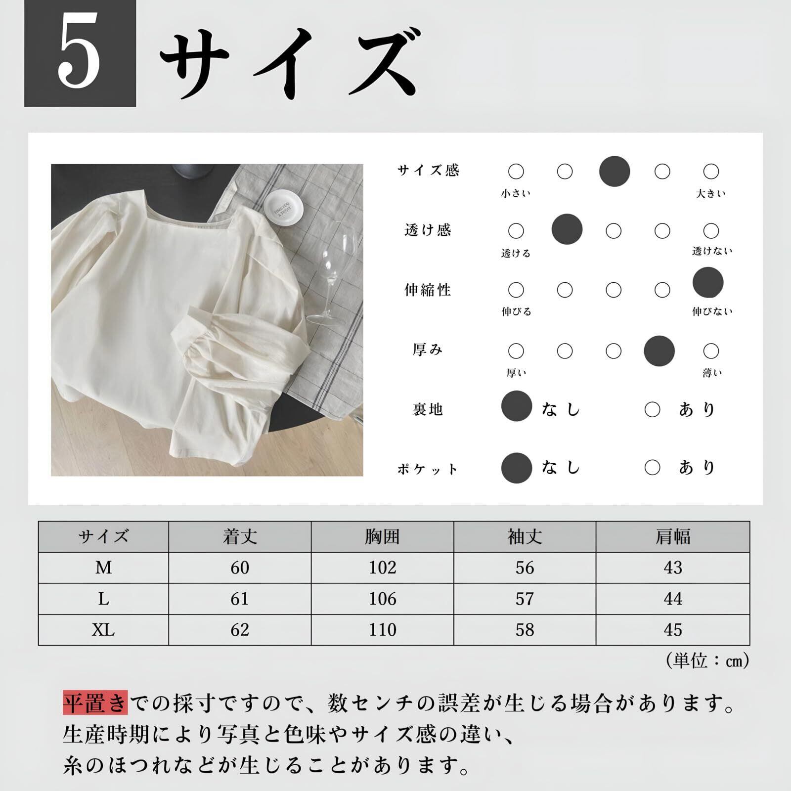 [Aglem] ブラウス レディース スクエアネック シャツ 長袖 パフスリーブ ボリューム 袖 襟なし 体型カバー 韓国 トップス ゆったり