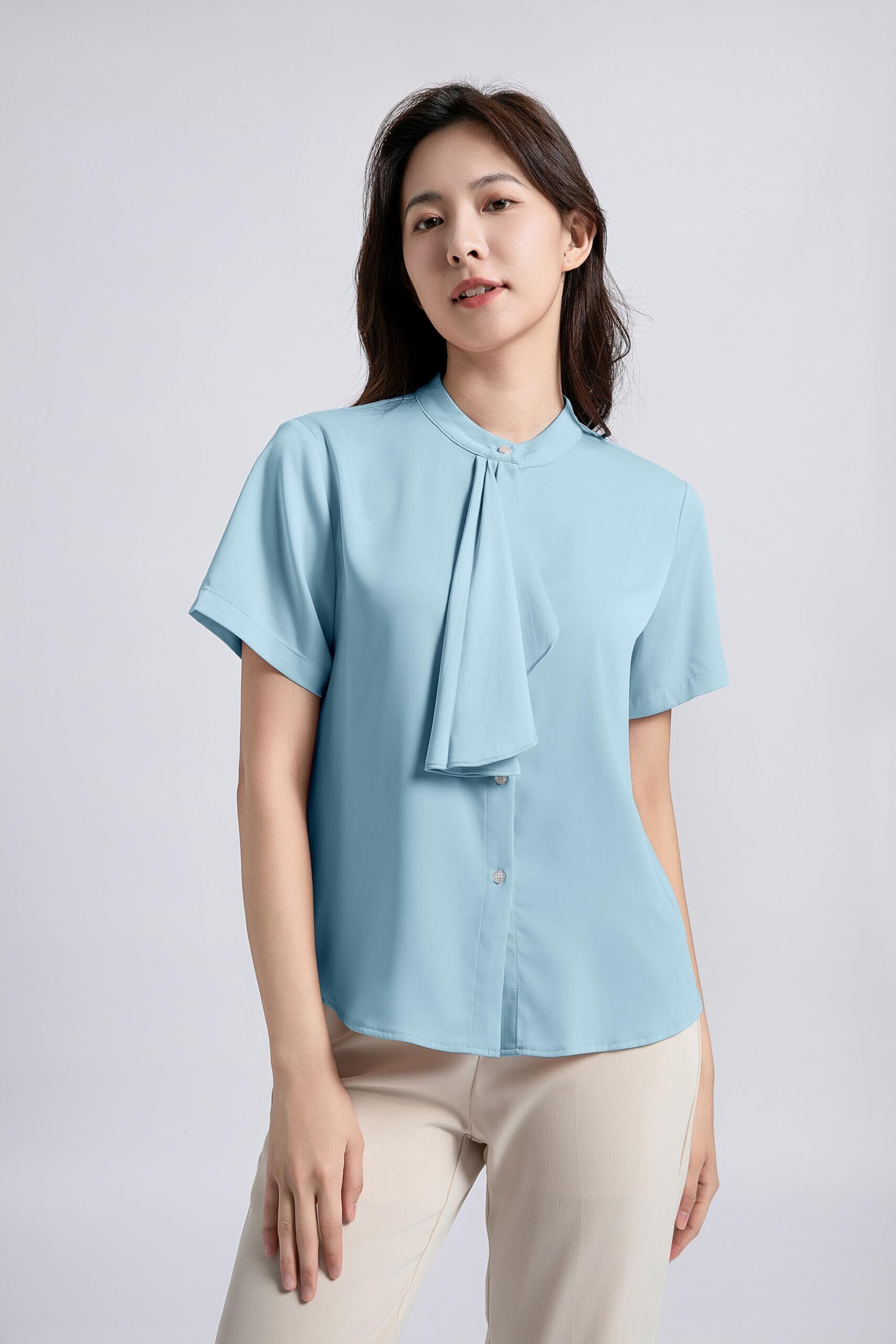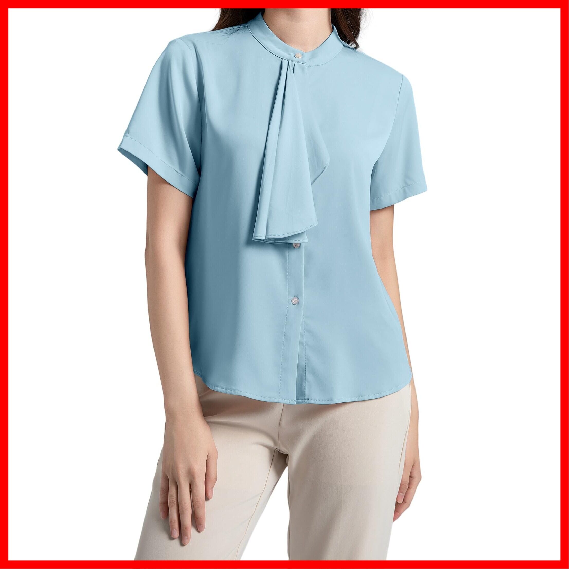 [SPRING SEAON] ボウタイブラウス 半袖 スカーフタイ レディース リボン きれいめ カットソー トップス オフィス ビジネス フォーマル スーツインナー 通勤 普段着 とろみ 大きいサイズ S~3L