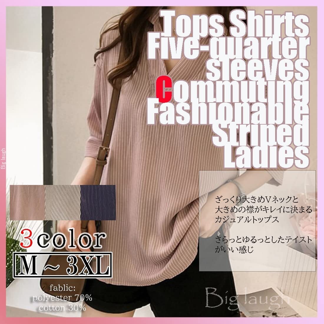 [ ビッグラフ ] トップス シャツ 5 分袖 通勤 お洒落 シルエット v ネック ブラウス カットソー ストライプ レディース