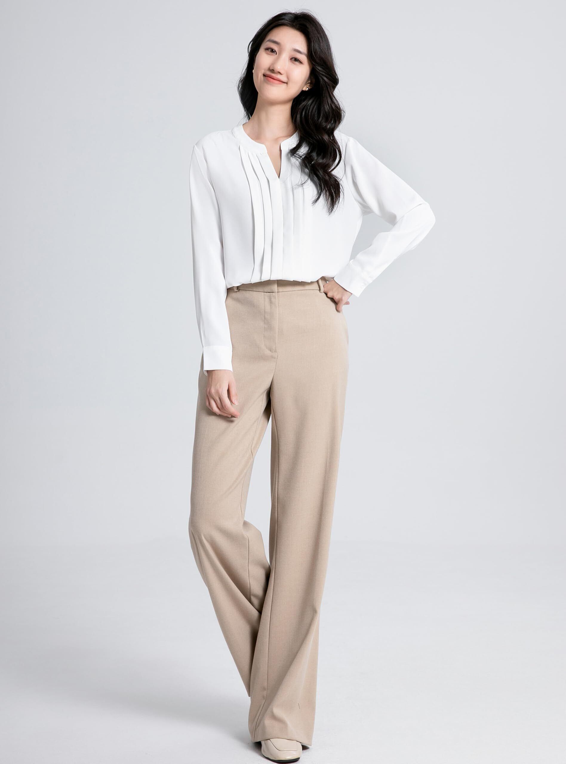 [SPRING SEAON] ブラウス 長袖 レディース Vネック シャツ シフォン タック カットソー ゆったり 大きいサイズ スーツインナー オフィス ビジネス 通勤 洗える 春 秋 日常 高通気性 S~4L