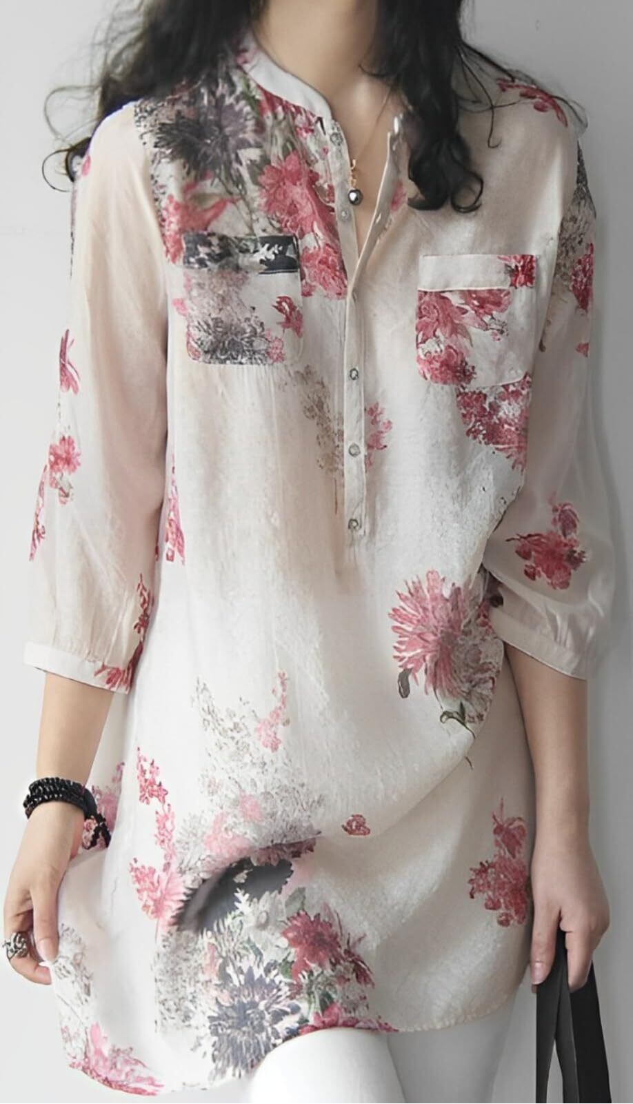 上品さが溢れだす花柄デザインのチュニックトップス 優しい色合いが女性らしさを引き出してくれる嬉しい1枚