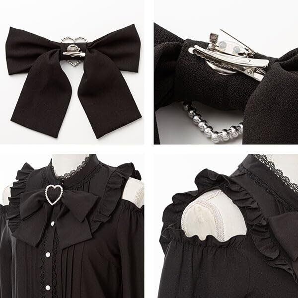 [SUNNYSTEP] ブラウス シャツ 大きいサイズ【S~6Lサイズ】肩出し 地雷 リボン 病み かわいい ピンク ブラック 黒 ホワイト 白 ボウタイ レース ロリータ フリル 量産型 地雷系 レディース ロリィタ トップス 長袖 ハート
