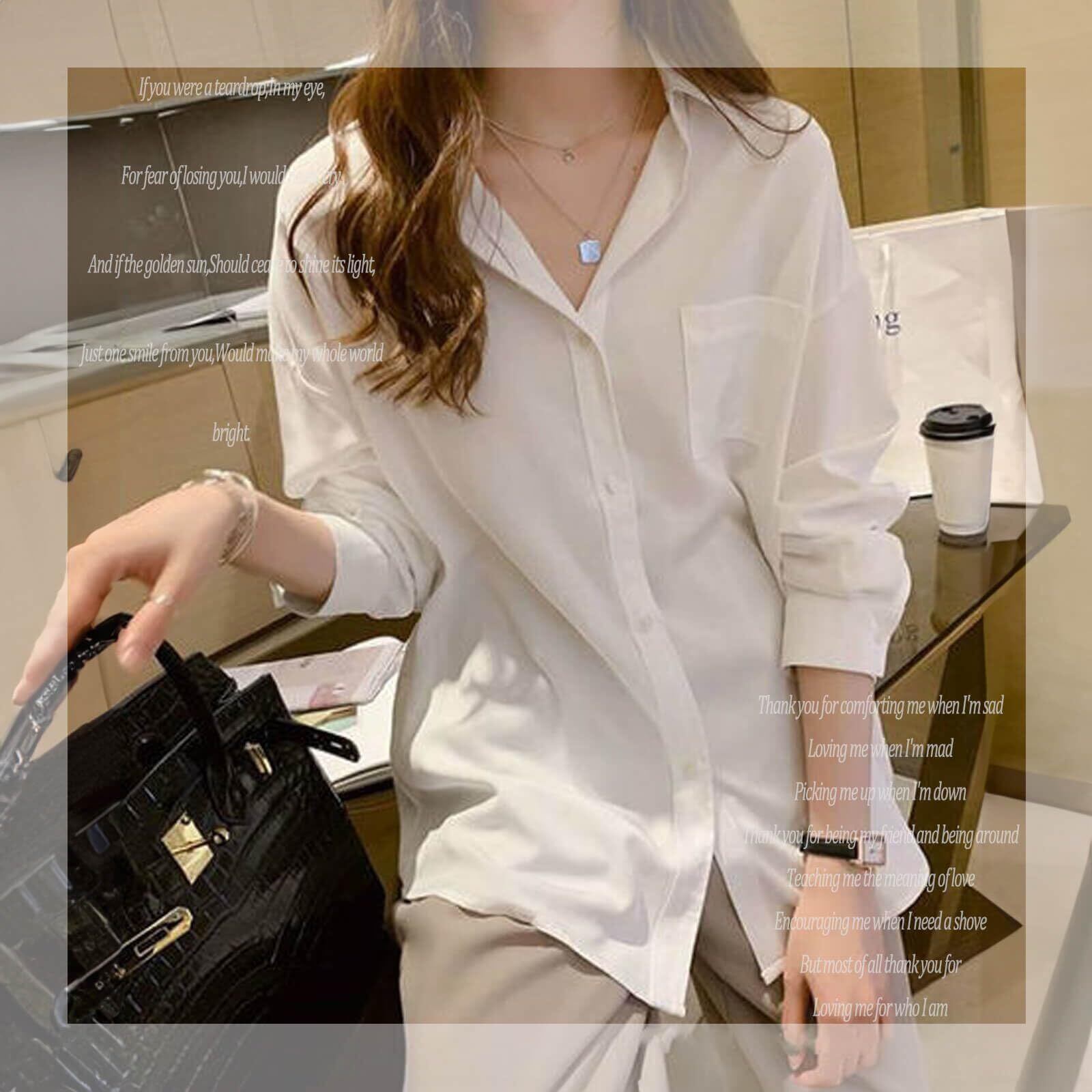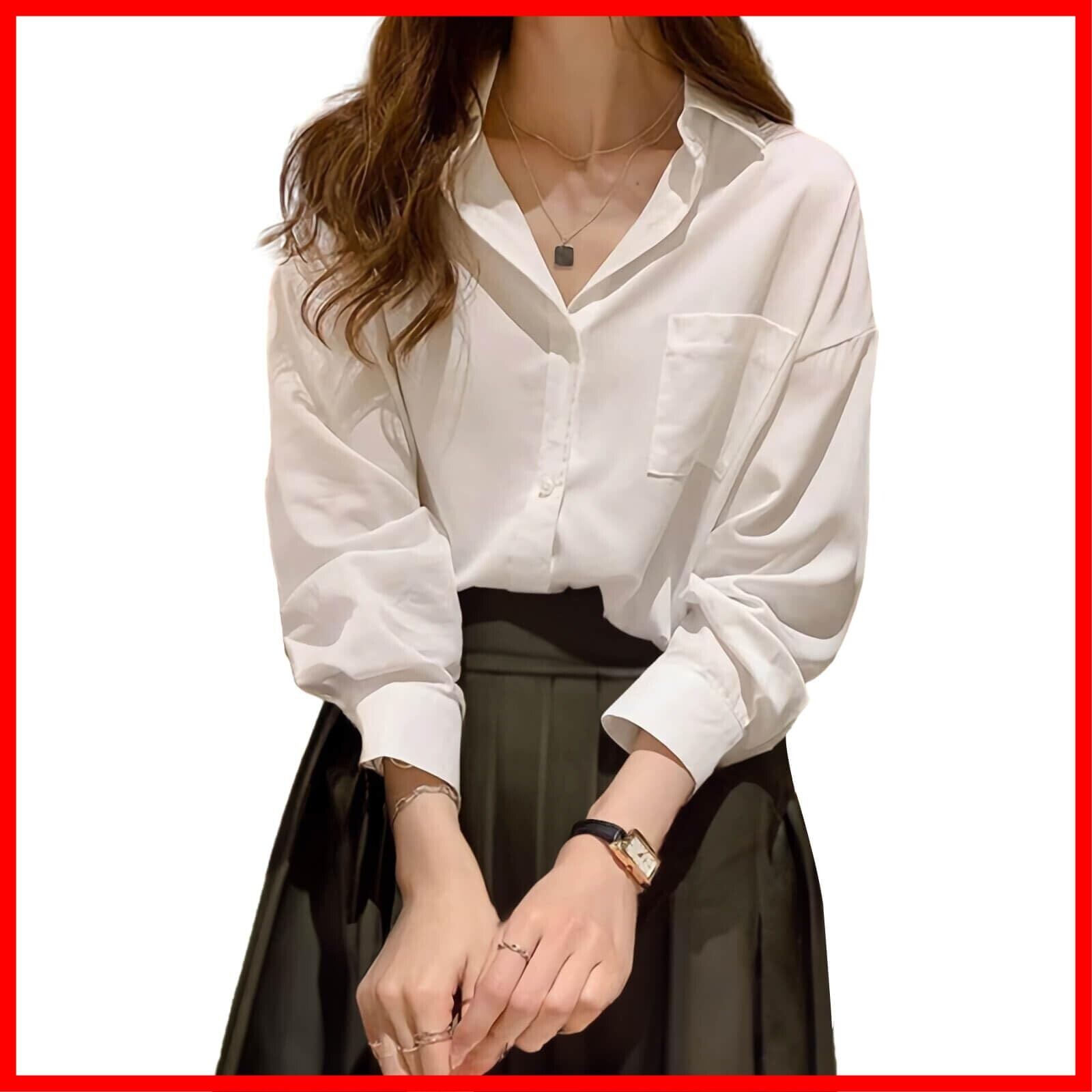 [fourfivesixはる] シャツ レディース 長袖 ブラウス ゆったり ブラウス 無地 長め カジュアルシャツ トップス 原宿系 ワイシャツ オールシーズン ホワイト 春 夏 秋 シンプル