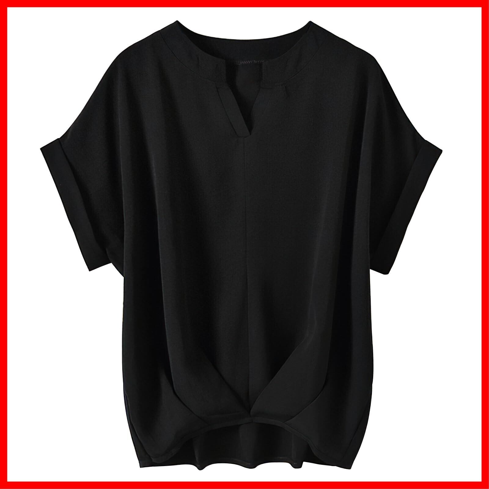 [Luxiwear] ブラウス レディース 半袖 【大人フェミニンなエレガンス·柔らかいシフォン素材·1枚で着映え主役級】 シャツ カットソー Vネック ゆったり 着痩せ 体型カバー きれいめ 可愛い 無地 着回し力 カジュアル トップス オフィス 通勤