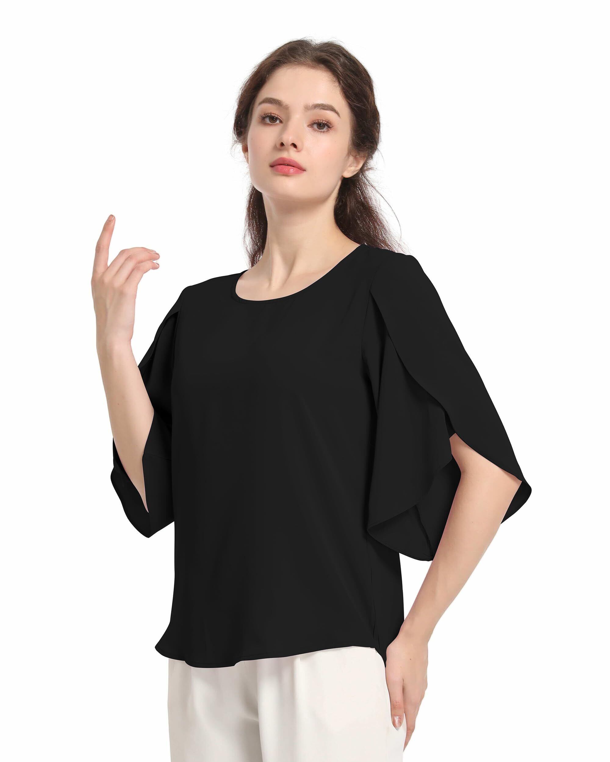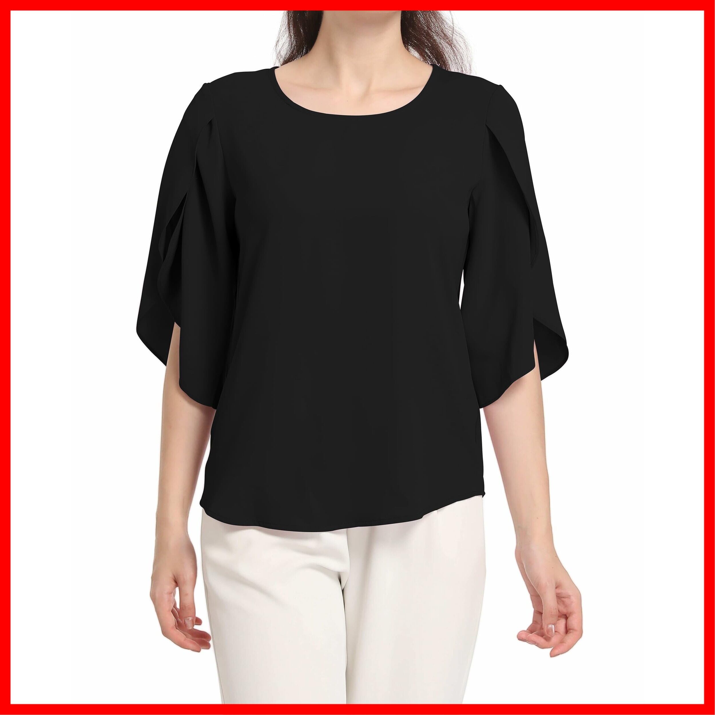 [SPRING SEAON] ブラウス シャツ レディース 夏 七分袖 プルオーバー ラッフル袖 ふんわり 涼しげ 大人可愛い ゆったり エレガント 高通気性 オフィスカジュアル 通勤 大きいサイズ S~4L