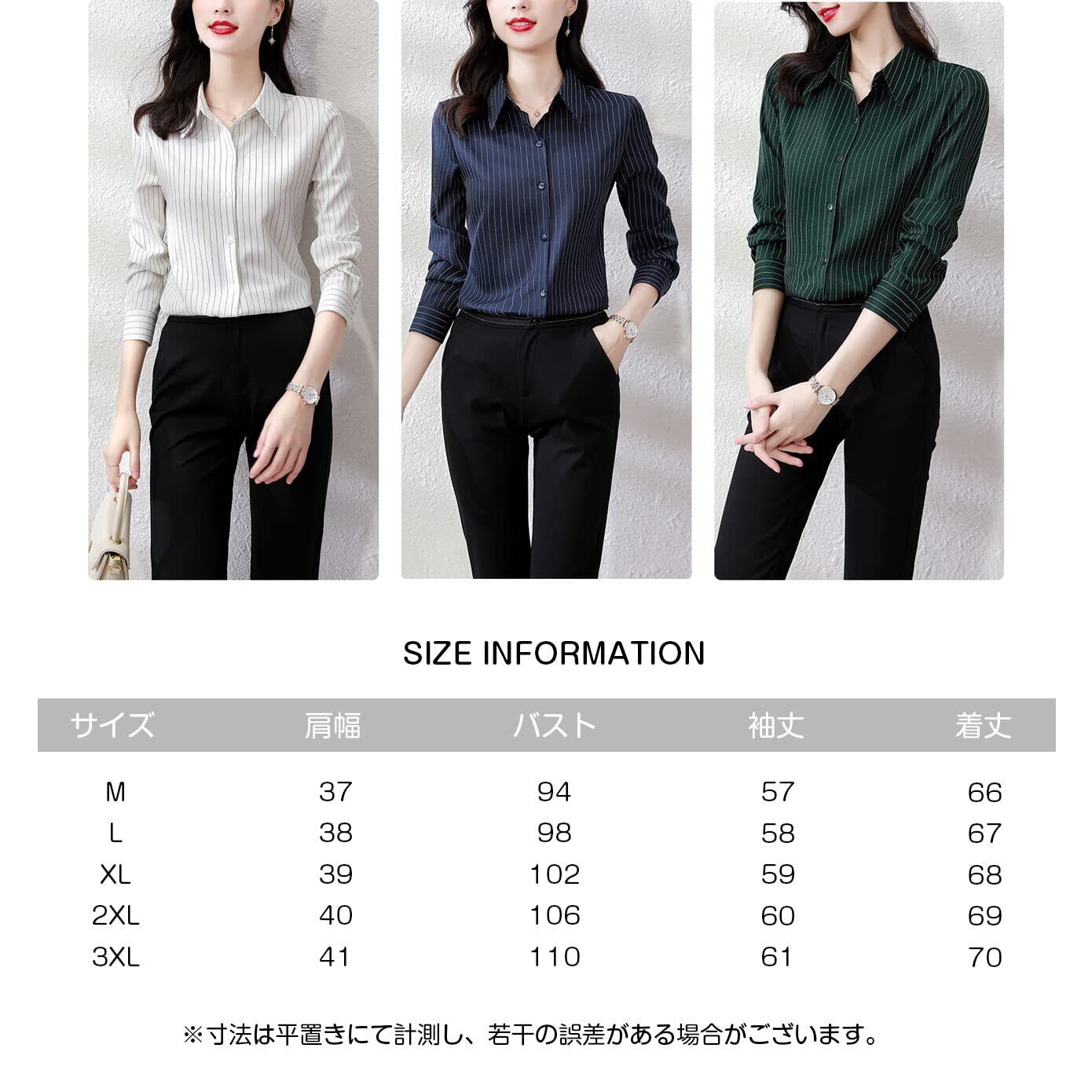 [Bolan Verl] ストライプ カッター シャツ 長袖 ワイシャツ レディース オフィス ブラウス ノーアイロン Yシャツ 厚手 上品 白 黒 ビジネス OL 通勤 事務服 春夏秋冬