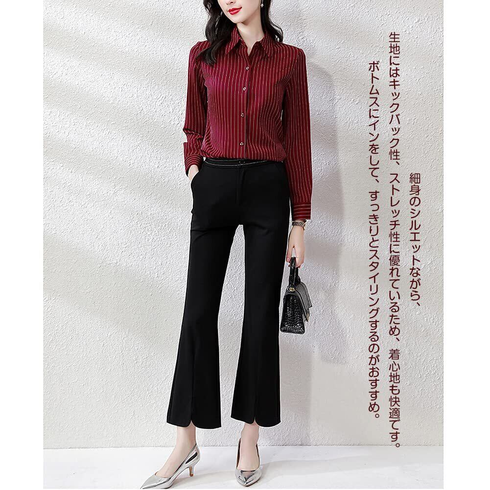[Bolan Verl] ストライプ カッター シャツ 長袖 ワイシャツ レディース オフィス ブラウス ノーアイロン Yシャツ 厚手 上品 白 黒 ビジネス OL 通勤 事務服 春夏秋冬