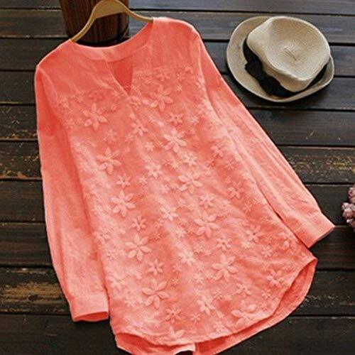 [ノー ブランド] ブラウス レディース シャツ 花柄 刺繍 チュニック Vネック 長袖 大人 トップス ゆったり お洒落 きれいめ カジュアル 普段着