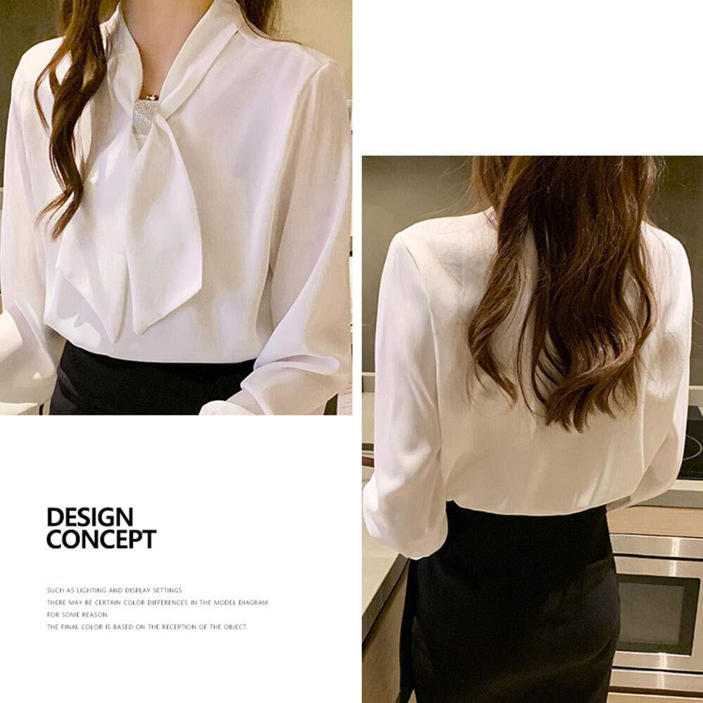 [SYitong] シャツ ブラウス レディース シフォン リボン トップス ボウタイブラウス 長袖 爽やか おしゃれ オフィス 大きいサイズ シフォンブラウス カジュアル 通勤 リボンブラウス 春 白 ゆったり きれいめ 着痩せ 体型カバー