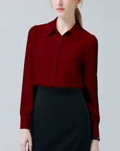 【素材】生地は100%ポリエステルファイバーです。シフォンのしっとりと柔らかい肌ざわりと滑らかな光沢が魅力です。清潔感があって動きやすい。これ1枚で女らしさときちんと感を両立します。