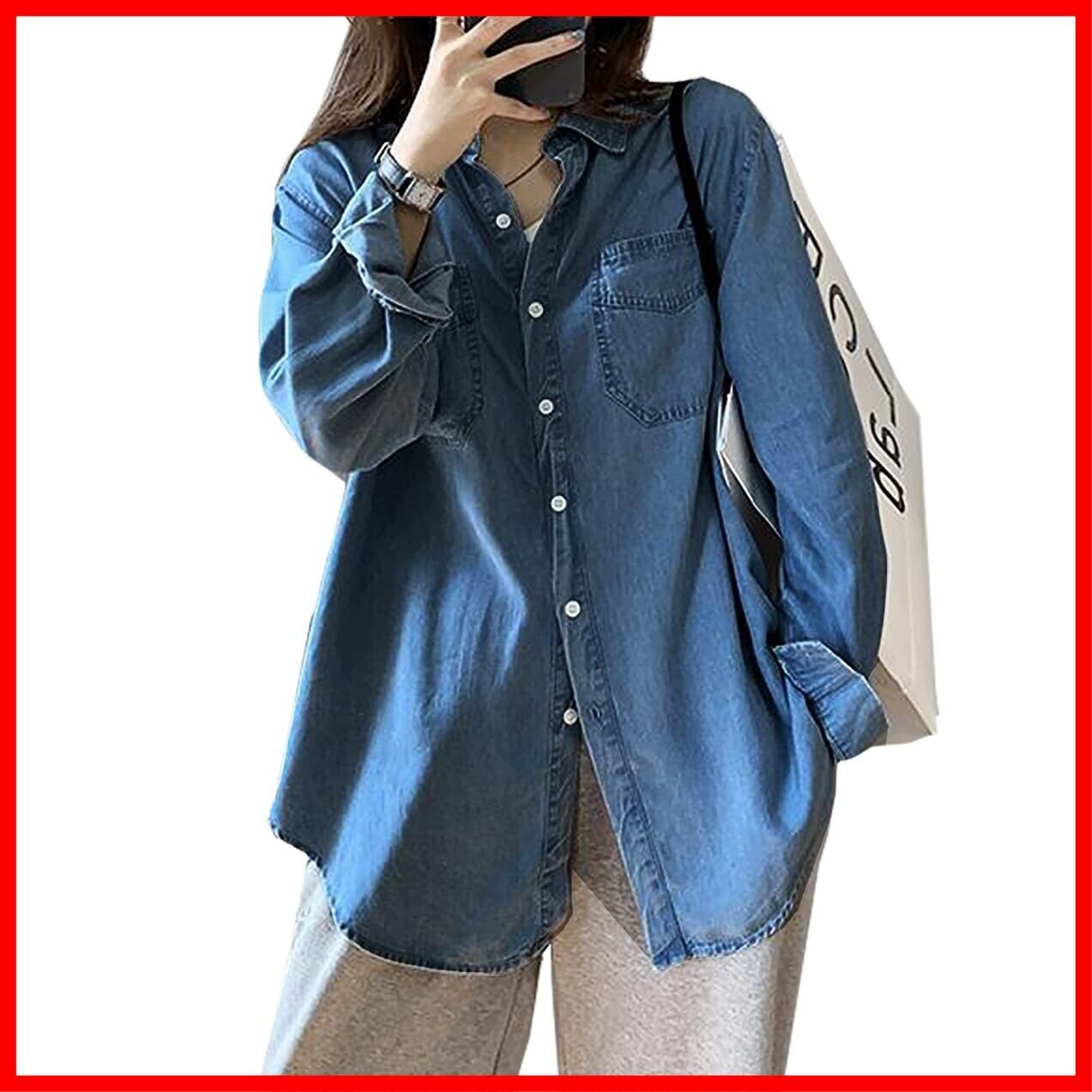 [BdeSYT] レディース 長袖 シャツ デニムシャツ カジュアル おしゃれ トップス 着痩せ 体型カバー ゆったり無地 ジャケット普段着 オシャレ S M L XL
