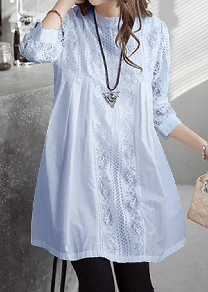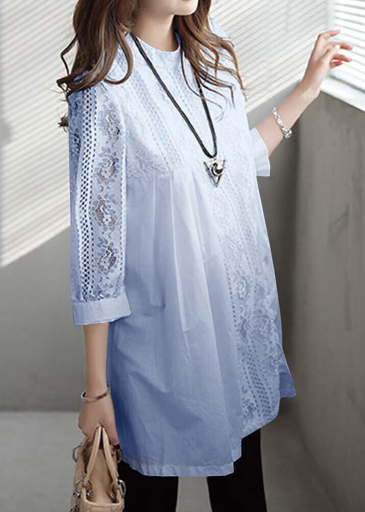 [Minesam] レースブラウス レディース 七分袖 ゆったり トップス 体型カバー チュニック きれいめ