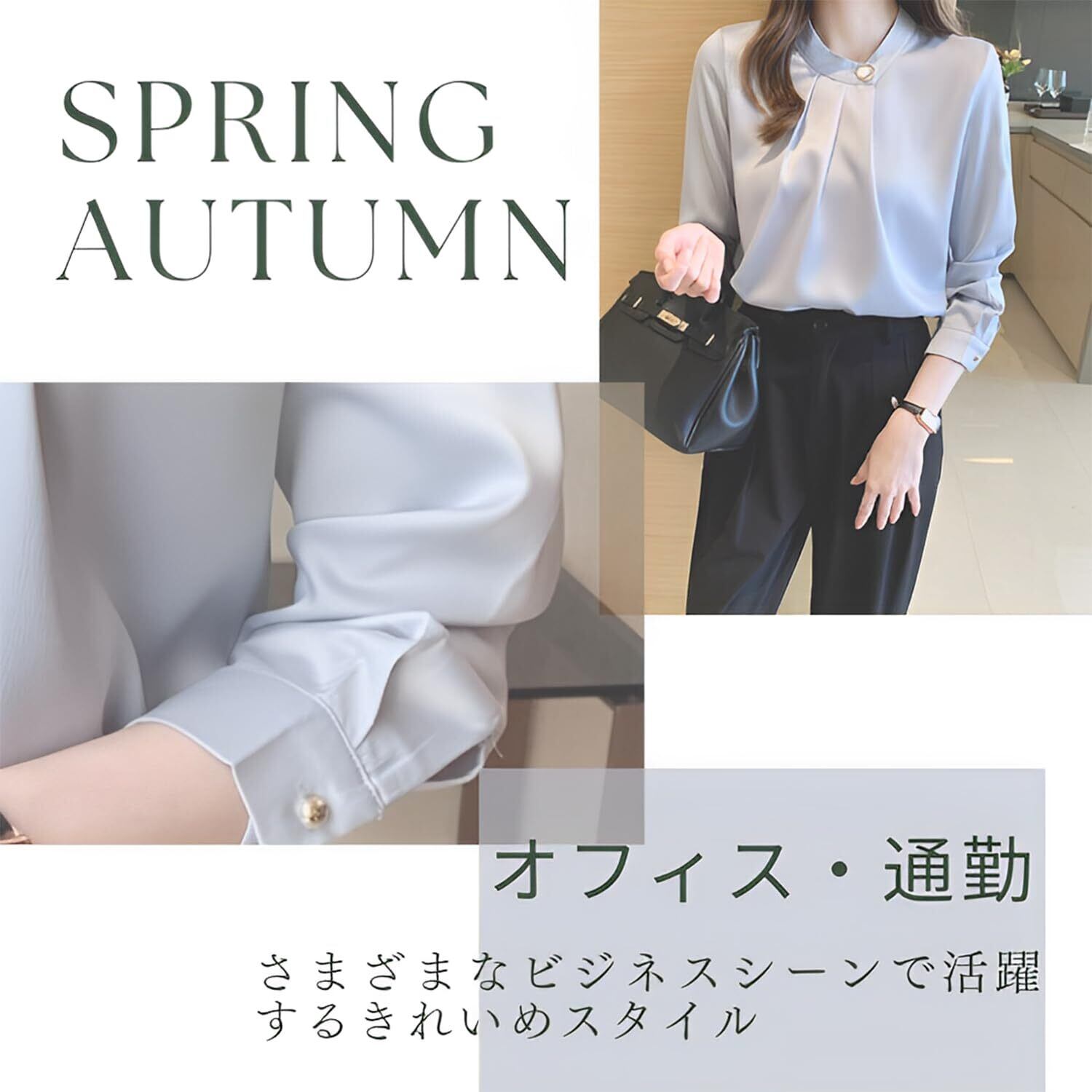 エレガントな立ち襟デザインが特徴で、首元を美しく見せ,繊細で上品なディテールが、オフィスや通勤にぴったりな一着です。