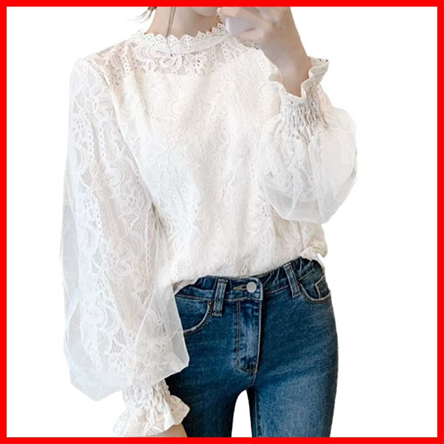 [Eolluka] レース シャツ ブラウス レディース チュール トップス 着痩せ 長袖 フォーマル オフィス 通気 春 夏 秋